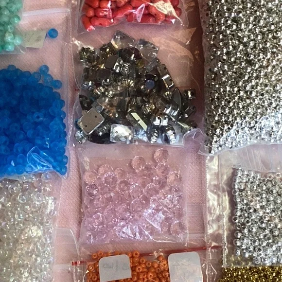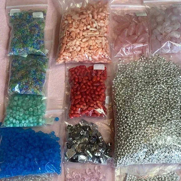 I am in the process of liquidating my jewelry making supplies.I always bought from people who were doing the same.This lot is packed full of bargains and due to weight it cannot be bundled with another listing unless it’s very lightweight.Also, because I am just trying to break even, I won’t be accepting offers.You will be receiving a fantastic deal on hundreds of items!This lot contains seed beads, glass, crystal, coral, Focalsand findings in various sizes and colors.There are approximately 30 individual bags in various quantities!