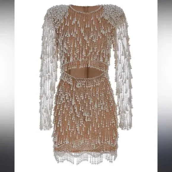 NWOT PATBO FULLY BEADED PEARL CUT-OUT COCKTAIL illusion DRESS sz 2The Fully Beaded Cut-Out Cocktail Dress is part of our Spring '23 Mainline Collection. It features intricate beading, light shoulder pads and an oval-shape cut-out.As seen on Leonie Hanne.Made in Brazil. Illusion Tulle with Faux Pearl Beads. VEC24427USCurrently on final sale at Patbo website for $2580.Original retail $4300.Please note that although Pugh this dress is NWOT it has been handled.I looked over the dress to see if incold notice any missing embellishments.I did not see any.I am more than happy to take additional photos or video upon request.