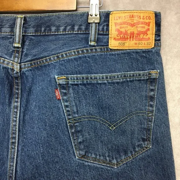 Levis 505 Regular Fit Mens Blue Jeans Straight Leg Denim Features - 100% Cotton - Zipper Fly Size - 40x32 Measurements laid flat, compare to your best fitting jeans. Across waist - 20.5 inches Rise - 13 inchesInseam - 32 inchesAcross cuff - 8.75 inchesCondition - Pre-owned, no issues noticed. See all photos. Thanks for shopping our small Texas business. We look forward to shipping your item out fast!