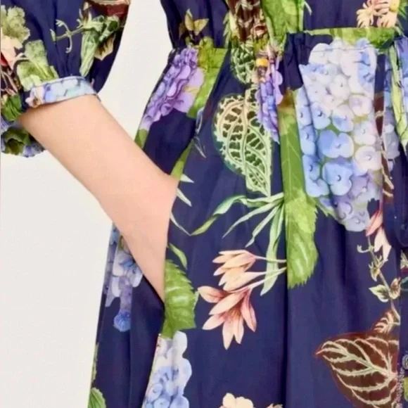 Cara Cara's Hutton midi-dress is crafted of cotton and adorned with an intricate floral motif. The silhouette highlights a spread collar, a drawstring waistband, and a button-front placket. It’s perfect for any occasion.Relaxed fitSize SmallSpread collarThree-Quarter-Length sleeves, elasticized cuffsDrawstring waistbandSide seam pocketsFlounce hemButton front100% cottonNWOT in excellent conditionFinal sale no returnable or exchange