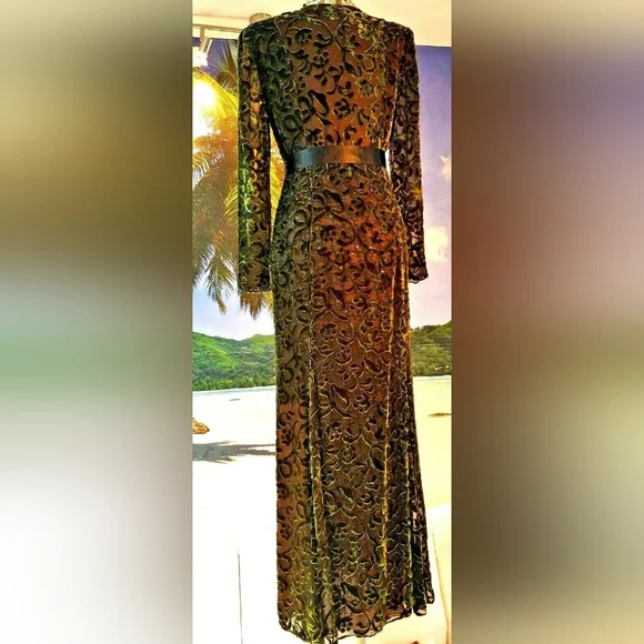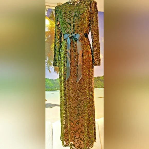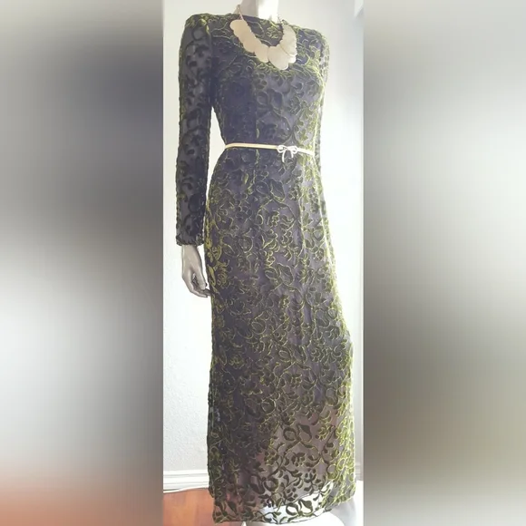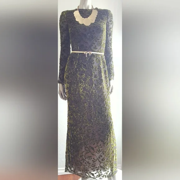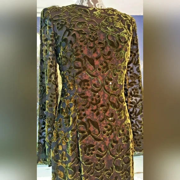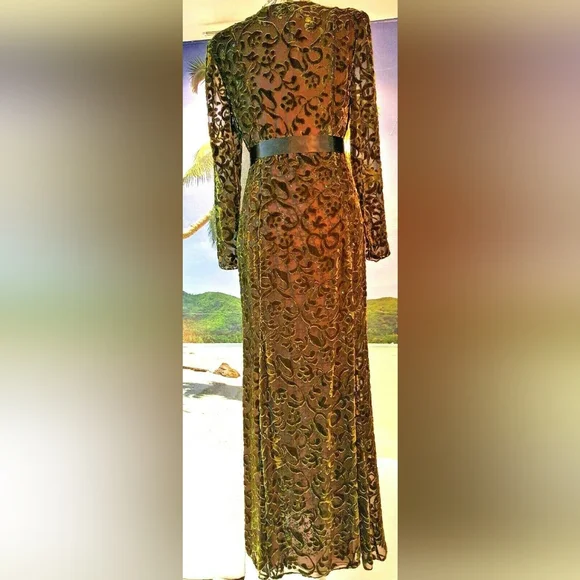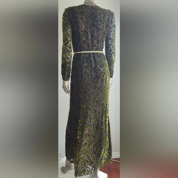 $6,000 OSCAR DE LA RENTA COUTURE SPARKLY GREEN SILK VELVET RUNWAY GOWN US 6JUST stunning Oscar de la Renta couture exclusive sparkling silk velvet floral long evening dress gown.High end stunning couture designer fabric made from see through pure silk fabric with velvet flowers and bows.FROM FAMOUS OSCAR DE LA RENTAVery fine craftman work with hand tailored sparkeling see through sequin.See pictures for the fine sequin hand embroderered net lining that shine through the silk velvet shell.Beautiful shaped for perfect figure.A RARE AND TRUE PIECE of ART.PLEASE SEE PICTURES FOR DETAILS.LOOK NEW LIKE IT WAS NEVER WORNA PIECE FOR COLLECTORS.Size US 6 36" bust30"waist38" hips58" length - from top of shoulderPlease go by the measurement.Fabrication: shell silk velvetFully linned with pure silk and a hand toilered sparkling sequin net lining that shine through the fine silk velvet shellOrigin: USACONDITION - EXCELLENT TO PERFECT CLEAN CONDITION LIKE NEW.Retail est. $6,000 plusAll of the items are guaranteed to be 100% authentic.SEE MORE BEAUTIFUL DESIGN IN OUR OTHER LISTING - SEE LAST
