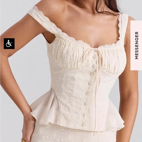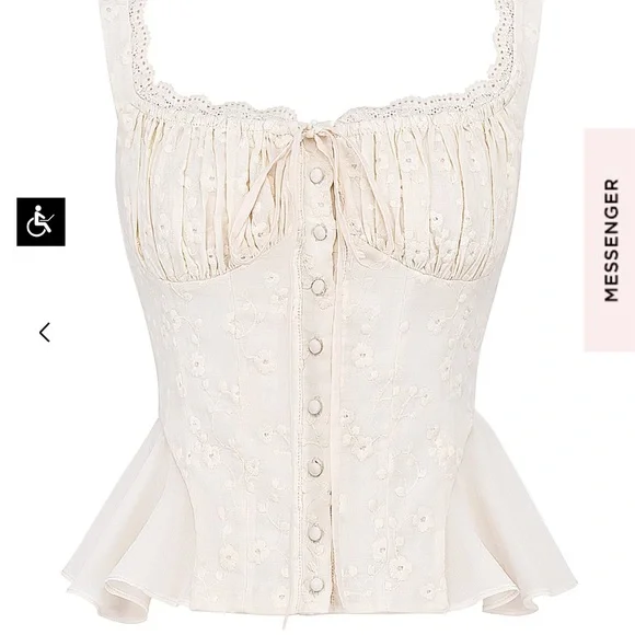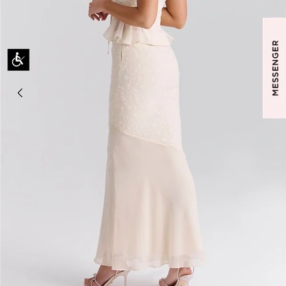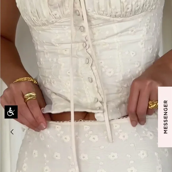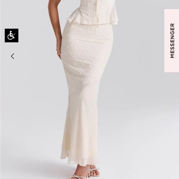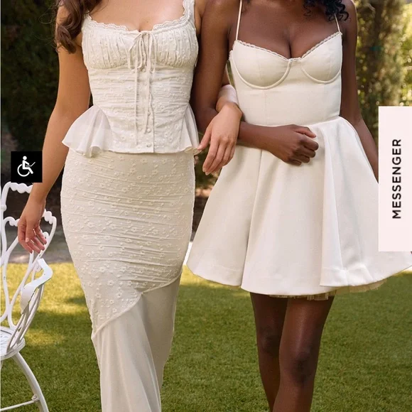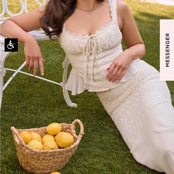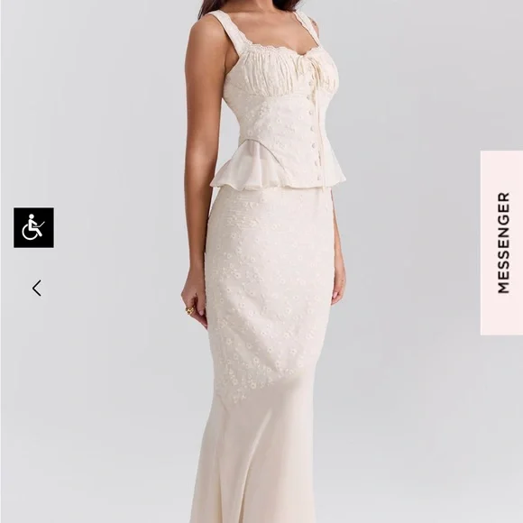 NWTBrand new never worn with tagsBeautiful eyelet lace cream white skirt and top set - just didn’t arrive in time for my event - looks like a gorgeous vintage dress with cottage core dainty style - perfect for brunch, events, wedding, bridal shower, baby shower, horse races, date night, Europe, Italy, France, Paris, RomeLana Maxi Skirt (size small)Jean Corset Top (size small plus cup)