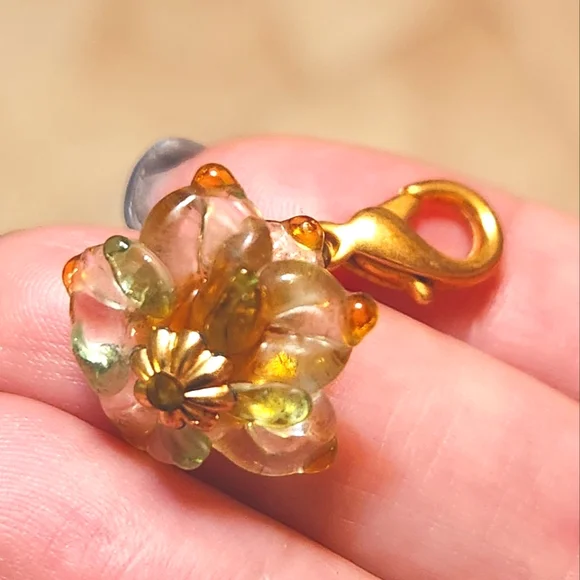 Anthropologie lot of 6 beautiful charms.Set includes wood initial h, silver tone citrine crystal sun, faceted peridot crystal teardrop, faceted lapis teardrop,sparkling rhinestone ball, and lucite flower.These gorgeous charms are spectacular aszipper pull accents on coats, handbags etc.All perfect condition Retail price $118Offers welcome