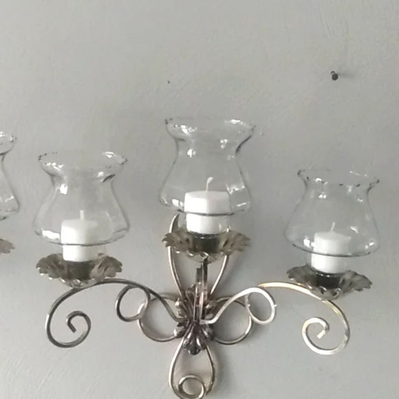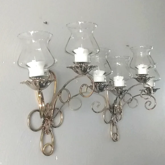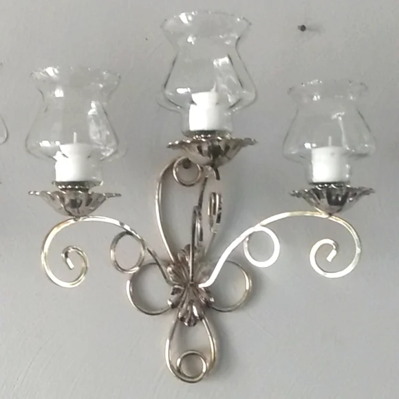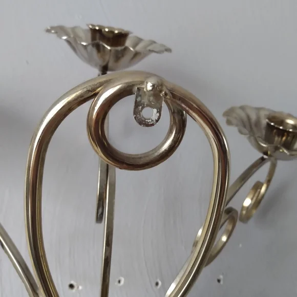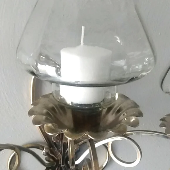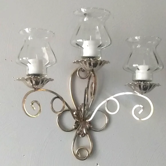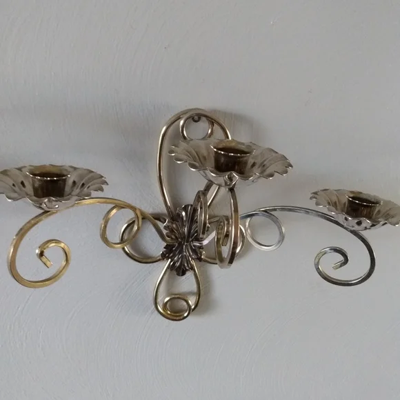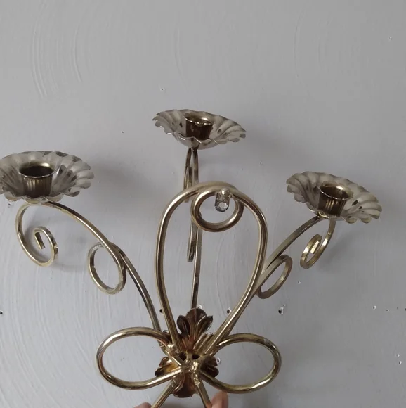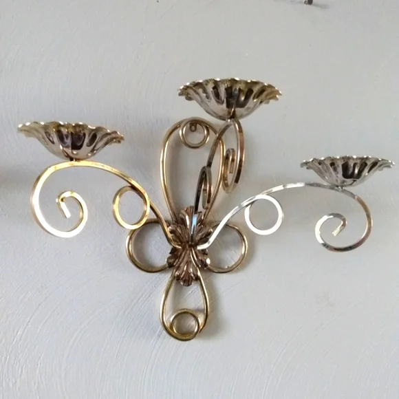 Pair Home Interiors triple candleholders, ⭐NO BUNDLINGdue to weight heavy metal⭐ patina, 11" x 14", 3/4" candles, (does not include glass votives) please see pics for wear and ask questions, Homco Syroco Dart Burwood Home Interiors Lerner Universal Statuary Sexton Boho Retro shabby chic country style farmhouse decor