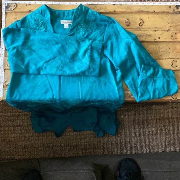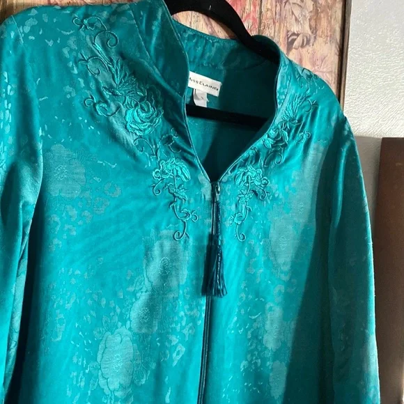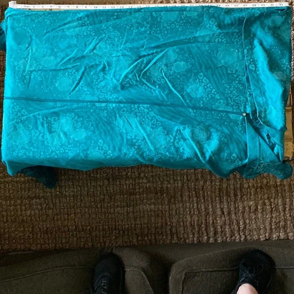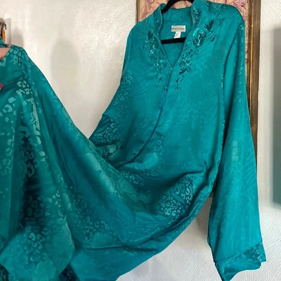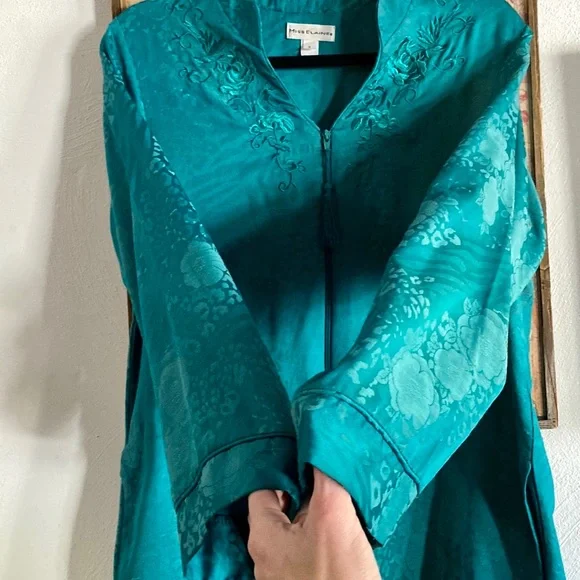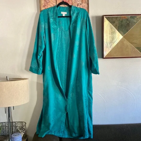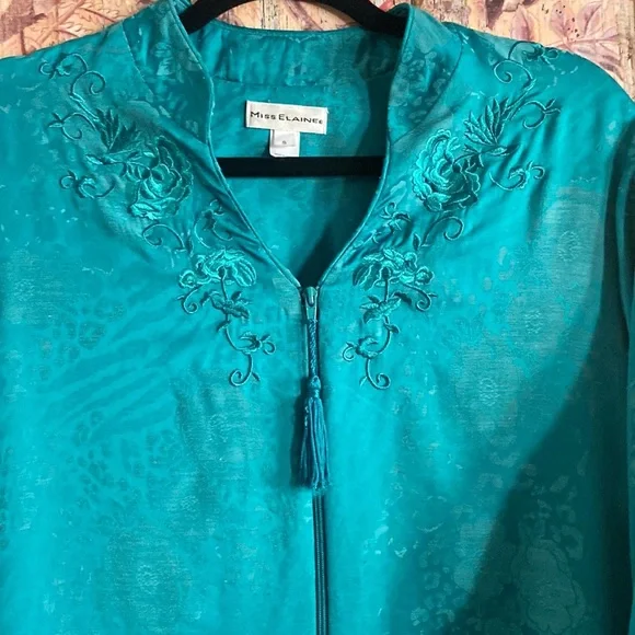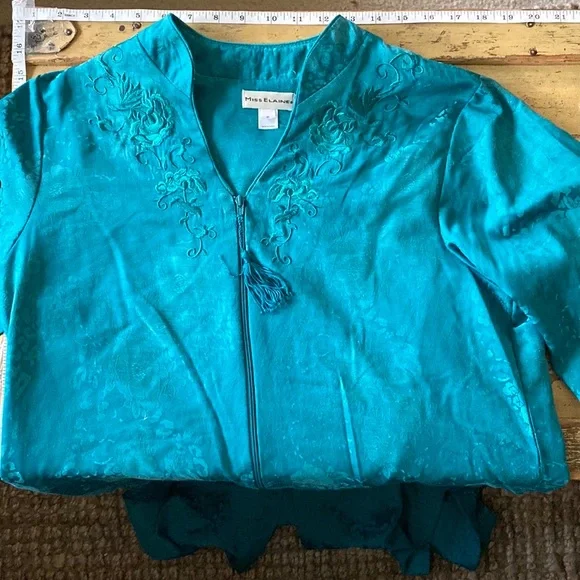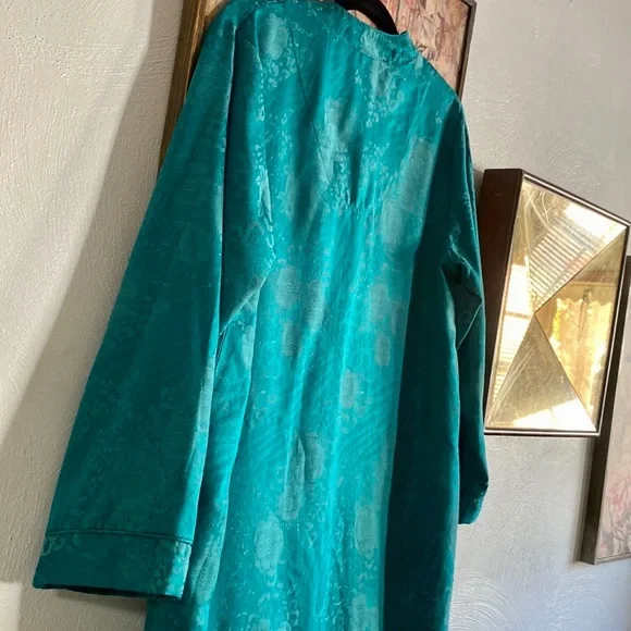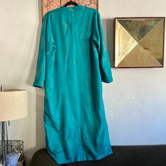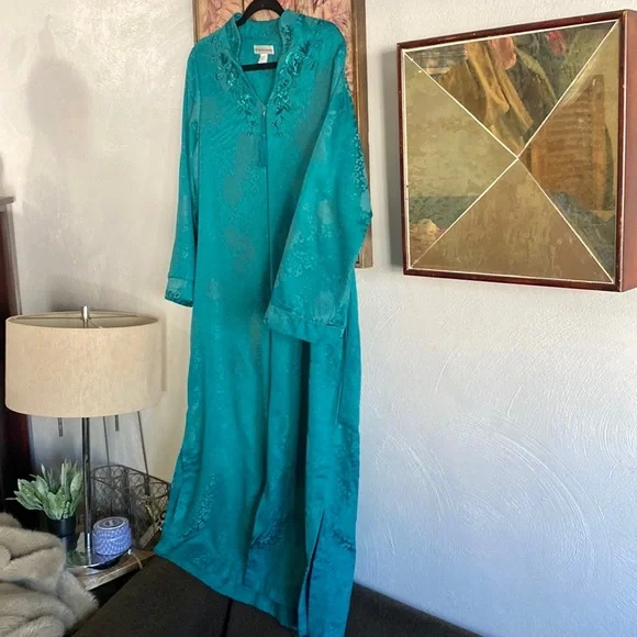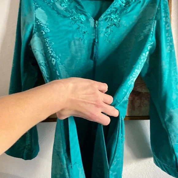 VINTAGE 70s 80s EMBOSSED FLORAL PATTERN TEAL SEA BLUE GREEN MAXI KIMONO ROBE MAXI DRESS VERSATILE🌸 KIMONO ROBE CARDIGAN BELL SLEEVE JADE BLUE GREEN GYPSY BOHO CHIC BOHEMIAN FLAIRTASSEL ZIP CLOSUREVINTAGE 80s MISS ELAINE LOUNGEWEAR HOUSECOAT KIMONO ROBE MAXI DRESS BELL SLEEVE🌿 Trending VIBE :VINTAGE • UPCYCLED • ARTISAN • HANDMADE NOTE: some stock photos represent color/pattern/style of brand/ similar but not exact itemSEE PHOTOS & MEASUREMENT ESTIMATES FOR SPECIFIC DETAIL / ITEM CONDITION DETAIL All items come from a CLEAN, (COVID-19 FREE), SMOKE-FREE home. Open to all REASONABLE offers (lowball offers will be ignored) Take advantage BUNDLING DISCOUNTModeling: Due to volume of items for sale, I cannot accommodate modeling items-many items also for sale b/c they no longer fit me properly-thank you for understanding-NO TRADES (downsizing)💙