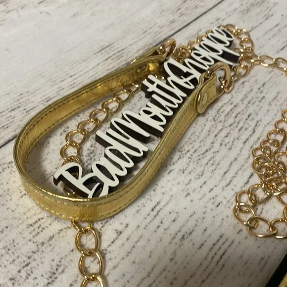 Condition:- Like new! I never carried this one. If it sits, it ships!- I am the original owner.- All bags from my collection are stored safely inside cabinets when not in use.Specs from the artist:- The Split Jackolantern Crossbody Bag! This bag is exciting because it can stand up on its own. - Measures 10.5” wide by about 7.5” tall and about 2” deep. - The front and back of the this color block bag features two different leathers - metallic gold lambskin and smooth black lambskin. - The front of the bag features a hand cut jackolantern face with mirror image black and gold leather underlay. - Zipper opening is 9” with a gold fringe zipperpull. - The inside lining is our signature black and white stripe lining with a wall pocket. - The long strap measures 49” long made from a durable yet beautiful gold tone chain and a metallic gold leather shoulder strap. - The length makes it just right to wear on your shoulder or as a cross body.Notes:- New to ? Sign up before you buy and use invite code BADMOUTHSHOPPE for a discount on your first order!- Click thru to my MEET THE POSHER listing for conditions & terms that apply to ALL of my listings. sales, and/or trades!- Many more Verona Black items for sale in my closet - I'm selling my collection! Click through to check it out!Tags:- Love Pain & Stitches