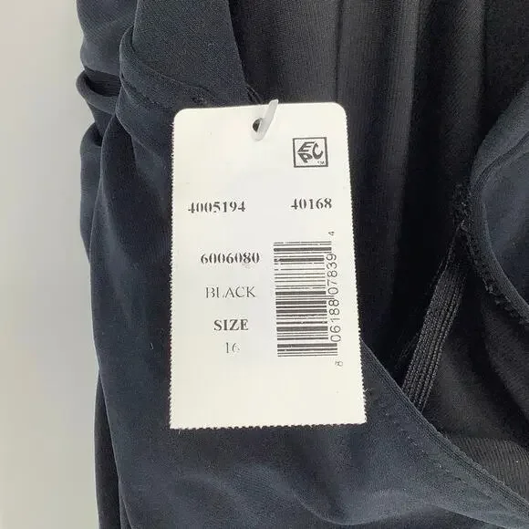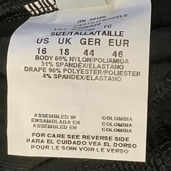 Brand: Magicsuit Size: 16Style: Swim DressColor: Black MSRP: $235Condition: New with original tags. Beauty begins within the body-hugging Magicsuit Solid Yvonne Tummy Control Swim Dress, as the one-piece spectacular stunner drapes every curve with distinct shirring to conceal. A plunging v-neckline cups the bust while halter straps adjust for appropriate support. Instantly shape your level of sexy. Made with LYCRA XTRA LIFE‚ spandex for a long lasting fit.Features:Wireless Bra Support With Soft Cup PaddingBra Can Accommodate Up To A D-CupV-NecklineAdjustable Halter Tie ClosureProvides Allover Slimming ControlShirred Design Flatters The MidsectionFull Straight BackSkirted Leg CutBody: 69% Nylon, 31% LYCRA® SpandexDress: 95% Polyester, 5% LYCRA® Spandex-HL