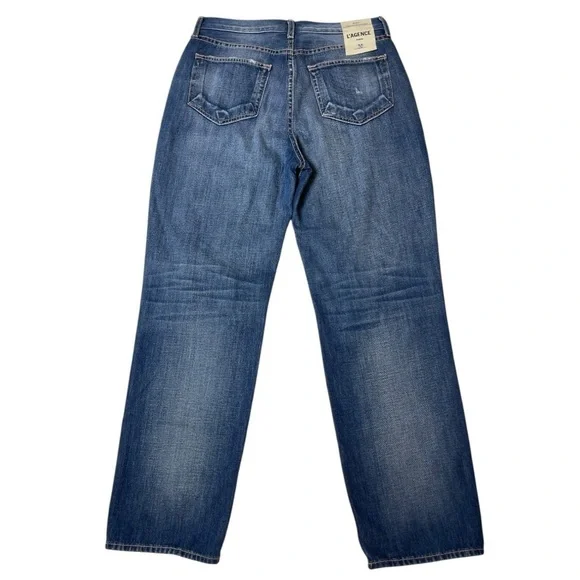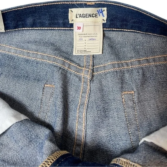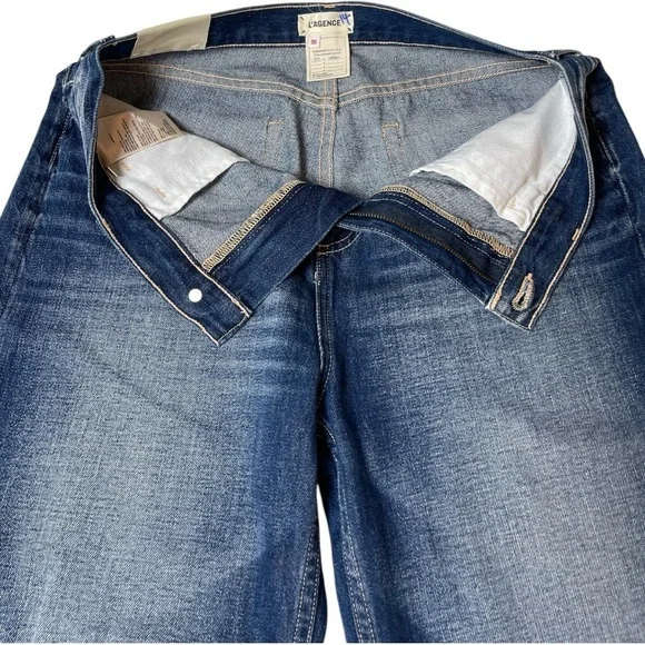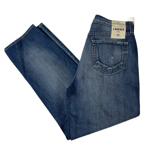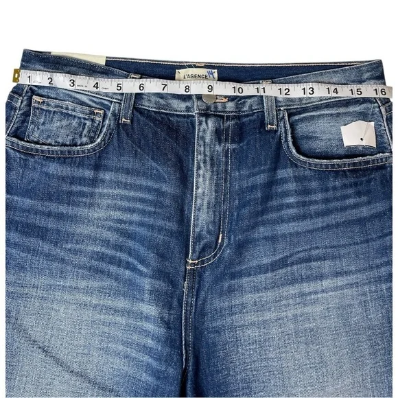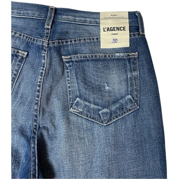 Elevate your style with L'AGENCE's blue distressed jeans. Perfect for a chic, casual look.Channel your inner cowgirl with these stunning wide-leg coquette jeans! Designed for effortless Western charm, these jeans feature a flattering high-waisted fit, flowy wide-leg silhouette, and vintage-inspired details. Perfect for pairing with boots or dainty heels, they blend rugged country vibes with a touch of feminine coquette elegance. A must-have for any modern cowgirl’s wardrobe