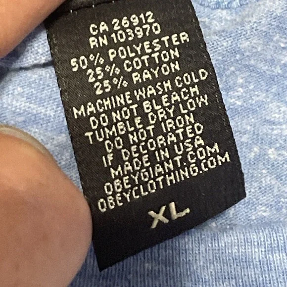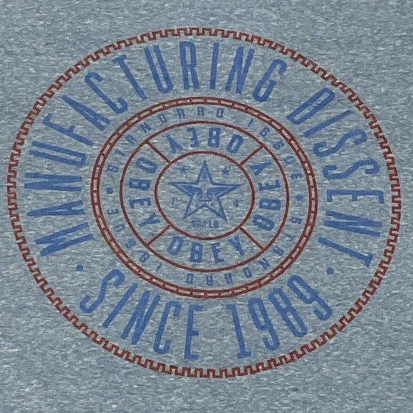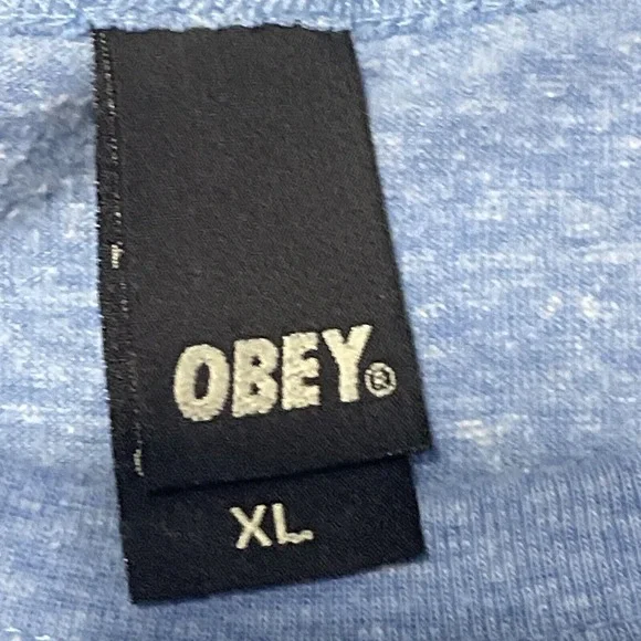 This exclusive Obey Manufacturing Dissent Tshirt is a must-have for any wrestling fan. Featuring Andre the Giant and a WWF theme, this shirt is perfect for those who love to show off their love of wrestling. Made with a cotton blend material, this shirt is breathable and perfect for all seasons.The shirt is designed with a crew neck and short sleeves, making it a comfortable fit for any occasion. The double-sided graphic print and collarless design add to the unique look of this shirt. This vintage piece is from the Buckle product line and is a size XL Don't miss out on the chance to own this rare piece of wrestling memorabilia.Item is made in the USA single stitch blue color slim tight fit measurements in photos