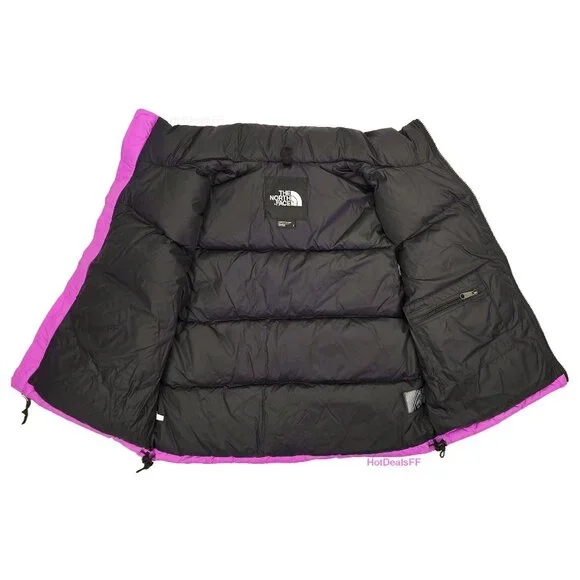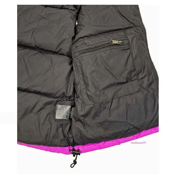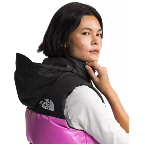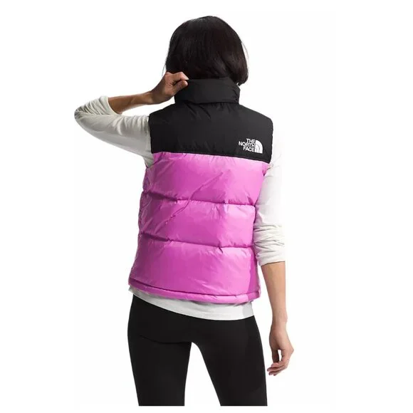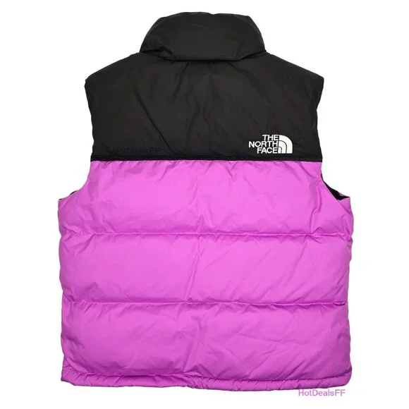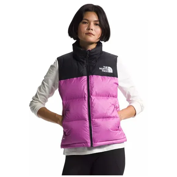DESCRIPTIONAt home in the mountains or the city, the Women’s 1996 Retro Nuptse Vest is a cold-weather icon for good reason. This ultra-warm layer has a durable ripstop outer, oversized down baffles and can be stowed in its right-hand pocket when temperatures rise.FEATURES-700 Fill Goose Down Offers Warmth Yet Remains Extremely Compressible-Embroidered Logo On Left Chest And Back-Right Shoulder-Exposed, VISLON® Center Front Zip-Fabric Made With Recycled Nylon-Has The Oversize Logos Of The Original ’96 Vest-Inspired By The Iconic Design Lines Of Our 1996 Nuptse Vest-Internal Drawcord With Cord Locks At Hem For Adjustability-Non-PFC DWR Finish For Added Water Repellency-Original Shiny Ripstop Fabric For Added Durability-Oversize Baffles-Relaxed Fit With A Boxy Silhouette-Secure-Zip Hand Pockets-Stowable, Attached, Three-Piece Hood-Taffeta Overlay On Collar And Yoke For Added Durability-Vest Stows In Right Hand PocketSIZE / MEASUREMENTS (measured on flat surface)Women's Large:pit to pit= 23"rear collar seam to bottom hem= 23.5"Women's XLarge:pit to pit= 24.25"rear collar seam to bottom hem= 25"DETAILSInsulation:700-fill-power recycled downSIZE:Women's Large and XLargeSTYLE #:NF0A3XEPQIXCOLOR:Violet Crocus / TNF BlackGUARANTEED AUTHENTIC.