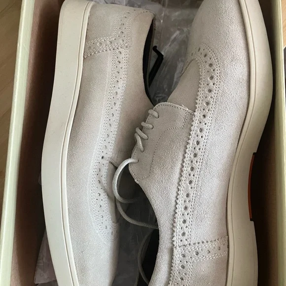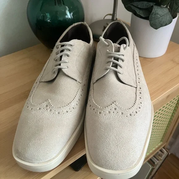 The perfect men’s shoes for summer! The size 7D means that it’s a standard width. New in box! Retails for $139.99!Crafted with precision, the Joseph Abboud Odessa Wingtip Suede Dress Shoes offer a sophisticated touch to any ensemble. In a light beige hue, these size 7D Oxfords are an elegant choice for those with a sartorial bent. The genuine leather upper ensures durability while exuding a classic vibe that's perfect for office attire or formal events.With a comfortable D width, these shoes are designed to fit seamlessly into your wardrobe, boasting a timeless style that's both versatile and stylish. Made in China, these shoes are not customized, ensuring that you receive the intended design from the renowned brand, Joseph Abboud.