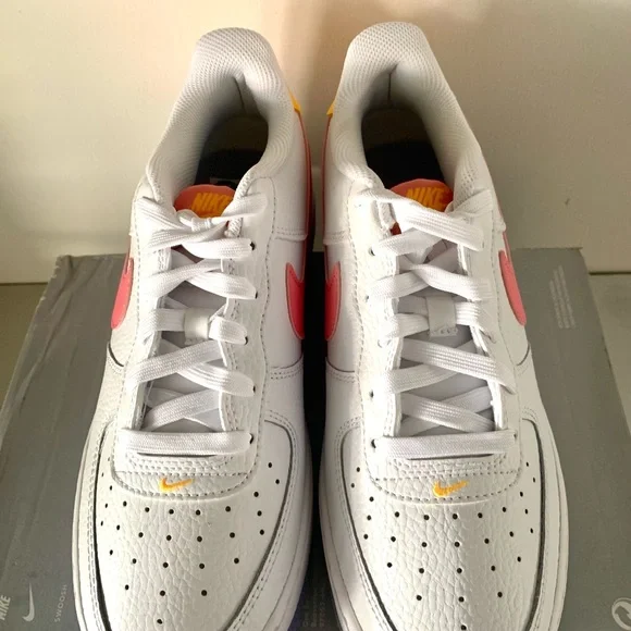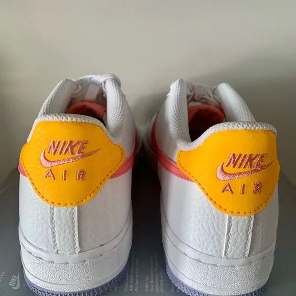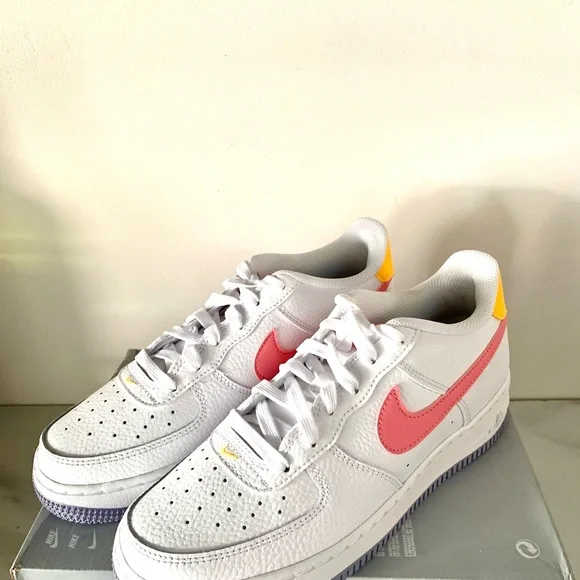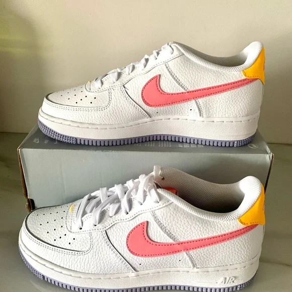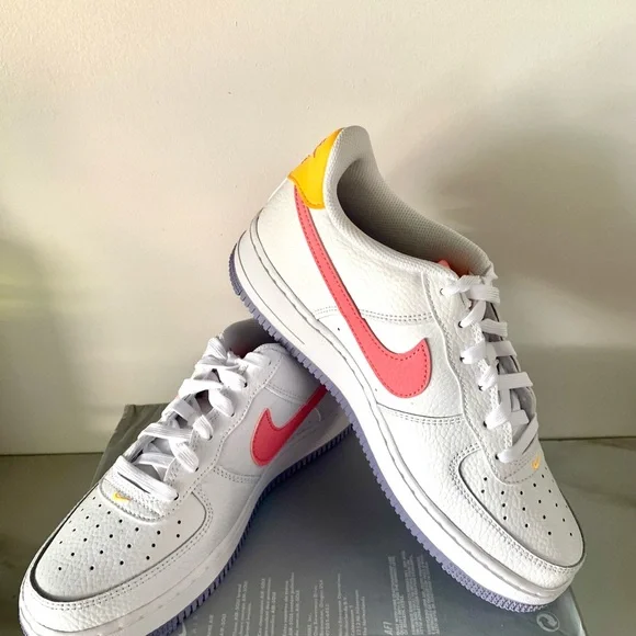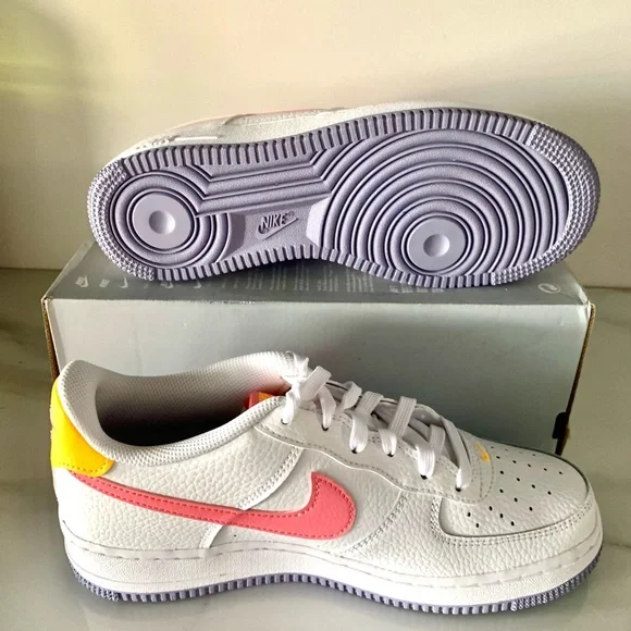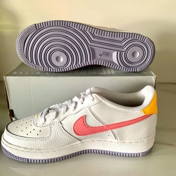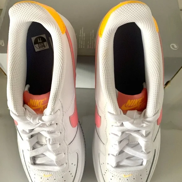 New with box / no lidSize 7Y/ 8.5 Women /6 UK/ 25 cmColor White Coral Chalk Laser Orange Real and synthetic leather gives durability and a classic AF1 feel.Hidden Air unit provides extra cushioning underfoot.Padded collar gives extra cushioning around the ankle.Full rubber sole with heritage circular pattern provides durable traction.Fast shipping with tracking information