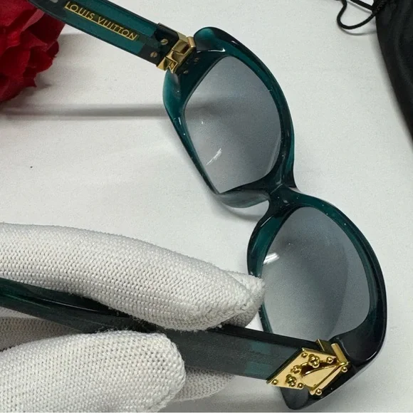 THESE WILL FLY AWAY SUPER FAST SO GRAB THEM QUICKLY 💨 This is ONLY pair available for sale anywhere in the green glitterAlways sell for well over $400 as they are a Louis Vuitton sunny staple Louis Vuitton Soupcom sunglassesExcellent like new condition Minor rubbing on interior wording, nothing else to point outSize is 57 13Z0136EHand made in FranceGreen glitter acetate with signature gold S-lock hinge inspired by Louis Vuitton luggageIncludes dustbag BRILLIANT DELIGHTS IS A POSHMARK VERIFIED LUXURY RESELLER, GOLD 🌟 AMBASSADOR & 5 STAR SHOP!See my posh shop for beauties from so many brands like Betsey Johnson, Chanel, Juicy Couture, Adidas, Valentino, Steve Madden, Dolls Kill, Wild Fable, Michael Kors, Universal Thread, Kate Spade, Banana Republic, Loft, Disney, Gucci, Skechers, Louis Vuitton, Anthropologie, Farm Rio, True Religion, Free People, Prada, Zara, Christian Louboutin, Maje, SCHUTZ, Levi’s, ASICS, Trina Turk and more!