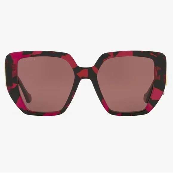 New! GUCCI Sunglasses GG0956S 008, AuthenticGender: FemaleFrame Color: Pink TortoiseLenses Color: BrownFrame Shape: SquareFrame Type: Full RimFrame Material: AcetateLens Material: NylonSize: 54/19/145Accessories: Full authentic original packaging which may include case, lens cloth, safety booklet.Manufacturer: Kering EyewearUV Protection: Category 3