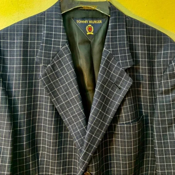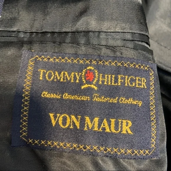 Vintage 90’s Tommy Hilfiger crest dark blue blazer with thin white lines . A unique and rare vintage find .Classic Tommy Hilfiger collaboration with high end store Von Maur. Single button front with bottom pockets. Fully lined with inside pocket. Perfect for career wear or with jeans . In excellent preowned condition . Size and care tag are not readable . Measures Approximately 20” from armpit to armpit 40” waist 30” from shoulder to bottom