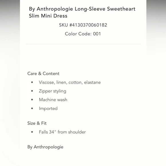 ✨ Anthropologie Long-Sleeve Sweetheart Slim Mini Dress Sz 6