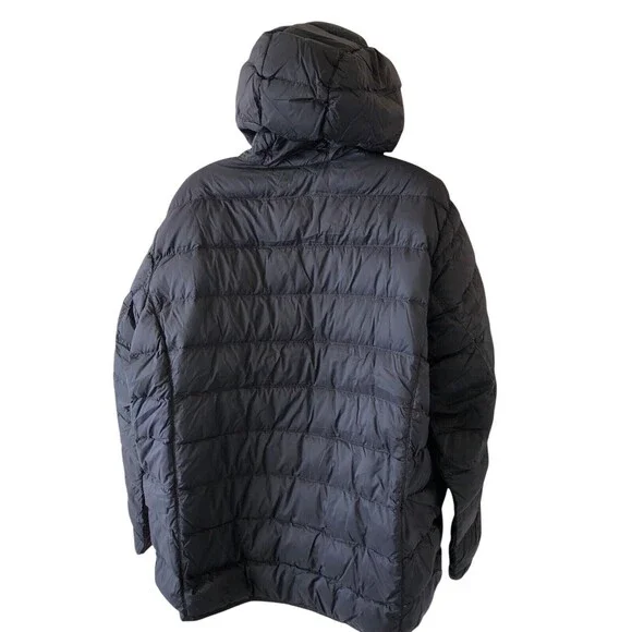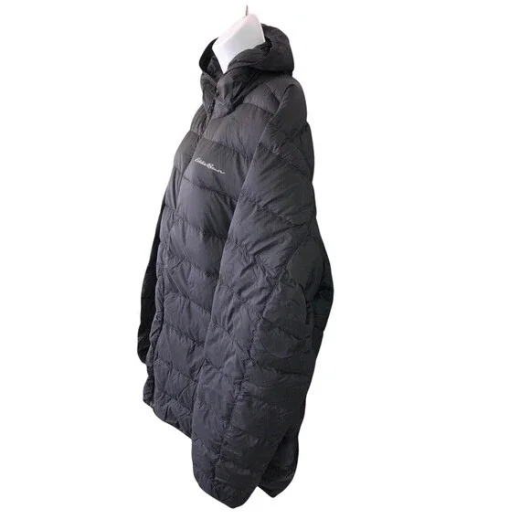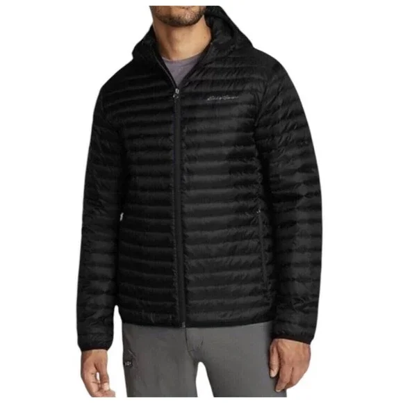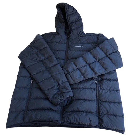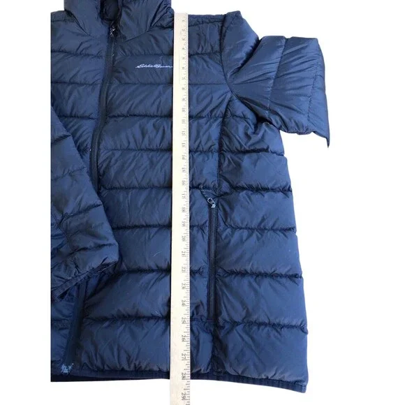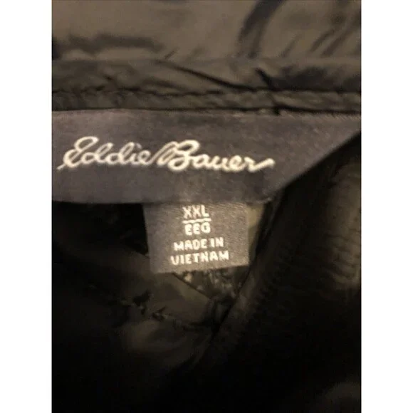 Unisex!Crafted for comfort and durability, the Eddie Bauer Men's Puffer Jacket in size 2XL offers an impeccable blend of functionality and classic style. The jacket features a softshell fabric construction with a durable nylon outer shell and a nylon-lined interior for added warmth. Its 650 fill down insulation ensures you stay cozy in colder weather, while the hooded design provides extra protection against the elements.Outfitted with a full zip closure, insulated pockets for warmth, and a solid black color for versatile wear, this jacket is suited for casual occasions and outdoor adventures alike. The jacket is also machine washable, making it a low-maintenance addition to your wardrobe. Whether you're heading to a weekend hike or a city street, this Eddie Bauer EB650 jacket is designed to keep you warm and stylish.See photos for detailed measurementsStock photos included to show style and fit only