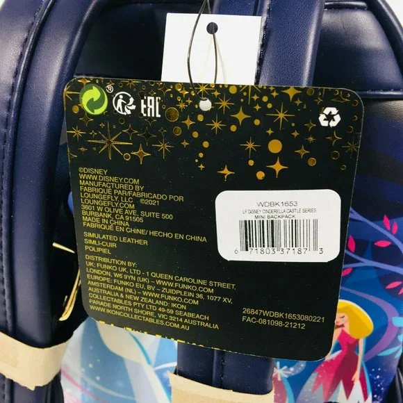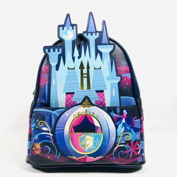 Loungefly Disney Cinderella Castle Series Mini Backpack BlueNew With TagsOfficially Licensed Disney BagFaux Leather with Applique, and Printed Details.Back DesignFront zipper pocket with zipper pull charm Stamped "Cinderella". Adjustable shoulder straps. Top carry handle. Printed Fabric Lining.Fashion Bag For Women and Juniors. Not intended for the use of children under 12 yearsMeasures: 9" W x 10.5" H x 4.5" DSmoke & Pet Free