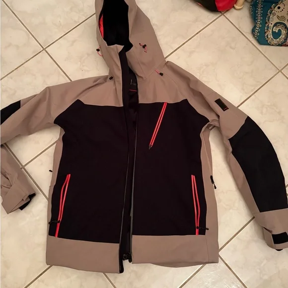 Stay stylish and comfortable with the men's jacket. Featuring a sleek black and tan design, this jacket is perfect for any occasion.wore few times only non smoker home super clean.