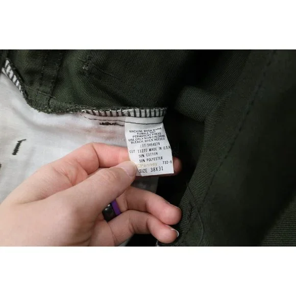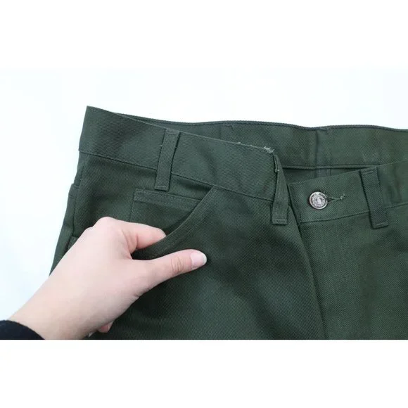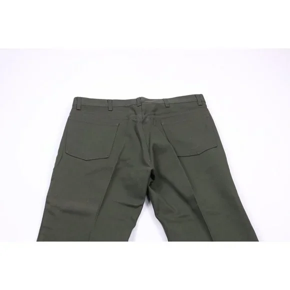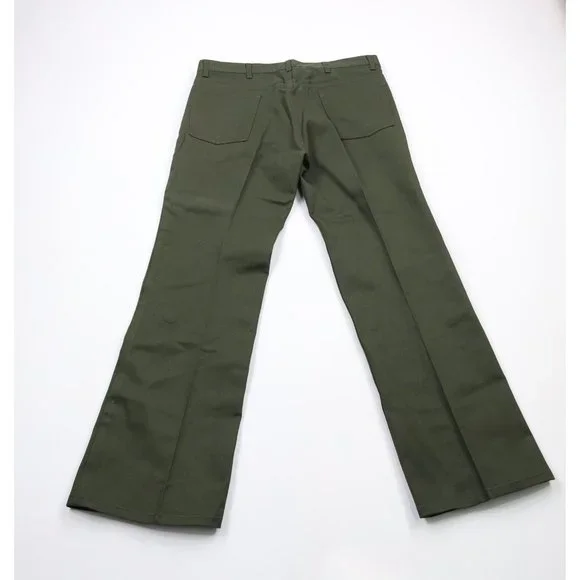 Vtg 70s Streetwear Mens 38x31 Distressed Wide Leg Bell Bottoms Jeans Green USAMens JeansBlemish on the left leg. USA made. 10.5 inch leg openMens size 38Measurements are:19 inches across the waist laid flat31 inch inseam42.5 inches from top to bottomGreen50% Cotton 50% PolyesterCheck out my other items in my store!PR1179