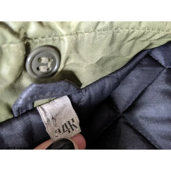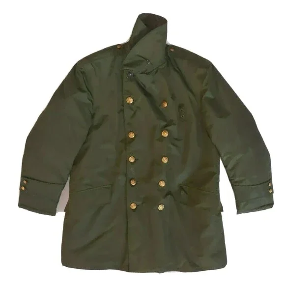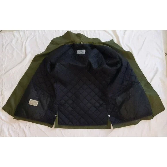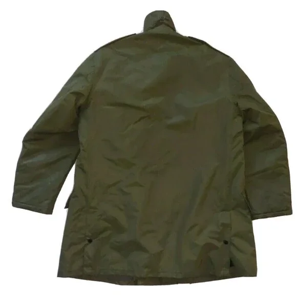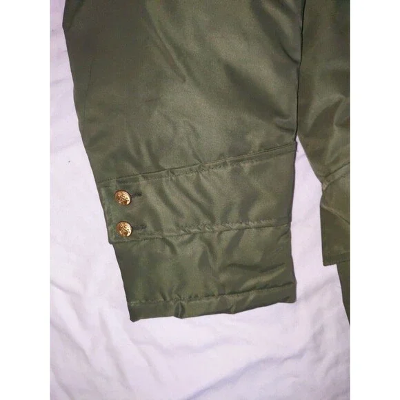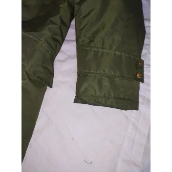 Jacket is Double Breasted with gold button closureTag Size : 44R USPlease carefully check measurements as every brands have slight differences in their sizing approach.Measurements (lying flat, unstretched) :Shoulder to Shoulder - 21"Underarm to Underarm - 25.5"Waist Just above Pocket - 25"Sleeves (shoulder seam to cuff) - 25"Length (center seem from bottom of collar to hem) - 36"Material : nylon, water resistantCondition : great pre-owned condition. Smoke-free and Pet-free environment.