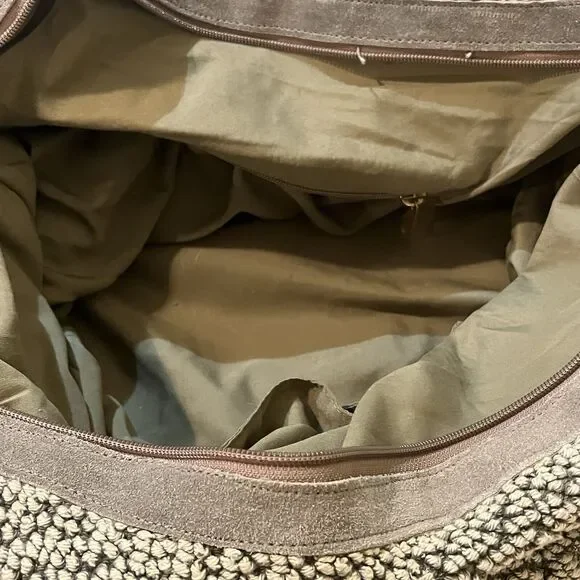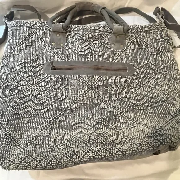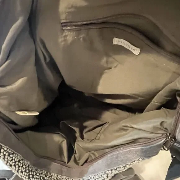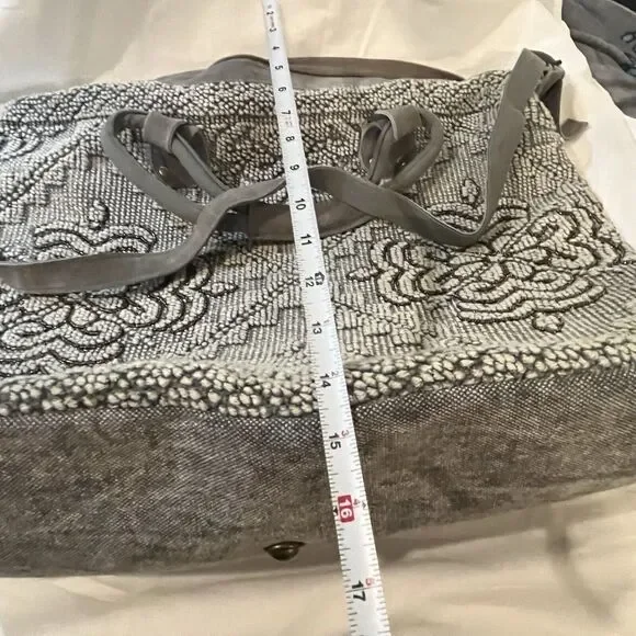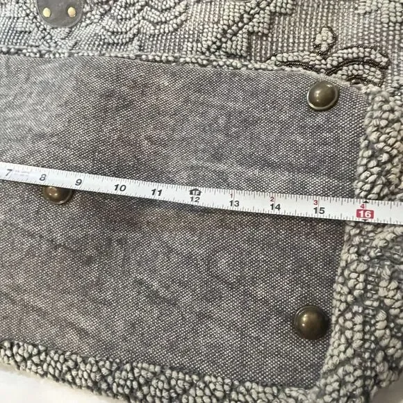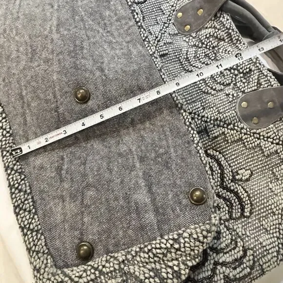 This Lovestitch tote is the perfect accessory for any bohemian-style outfit. The gray and tan color scheme, combined with beaded and embroidered accents, gives it a unique and stylish look. It has double handles and a shoulder strap for easy carrying, and its rectangular shape makes it suitable for travel or everyday use.The bag is made of cotton and leather, while the lining is made of cotton. It has various features such as inner and outer pockets, a mobile phone pocket, and bottom studs. The bag is packable and comes with a zip closure. With its spacious interior and large size, this tote is perfect for any occasion.