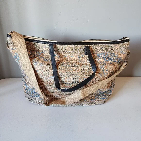 "NEW" Fantastic Woven Jute X-Large Weekender Bag By Free People. Zip Top Closure, Dual Top Handles w/10" Drop, Adjustable & Removable Wide Crossbody/Shoulder Strap, Brass Hardware, Clean Textile/Cotton Lining with 1 Large Zip & 1 Large Slip Pocket, 52% Jute/38% Poly/105 Cotton, Bag Measures approx. 24 X 15 X 9, New, Tag, Never Used:) Rt.178.00*Sold Out Perfect Carry-on/Weekend/Travel Bag! ** Great Gift for You or Loved One.