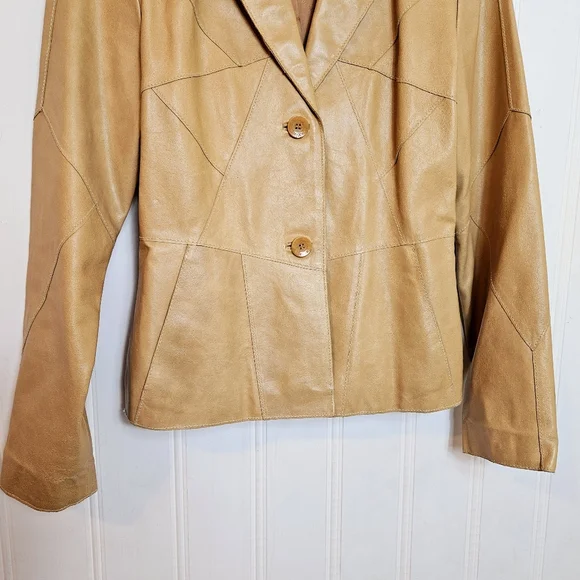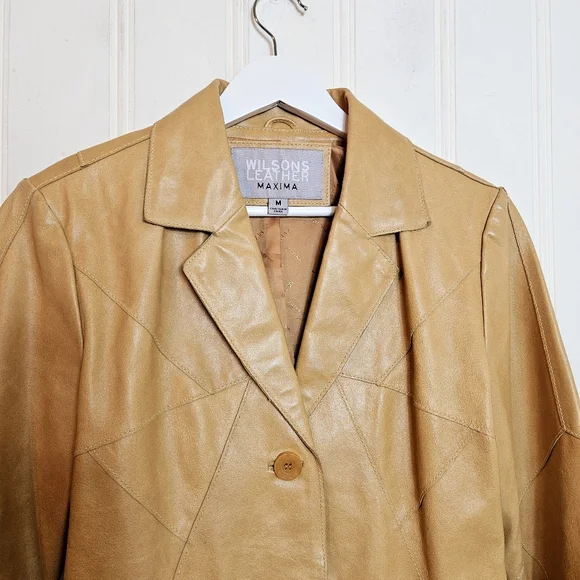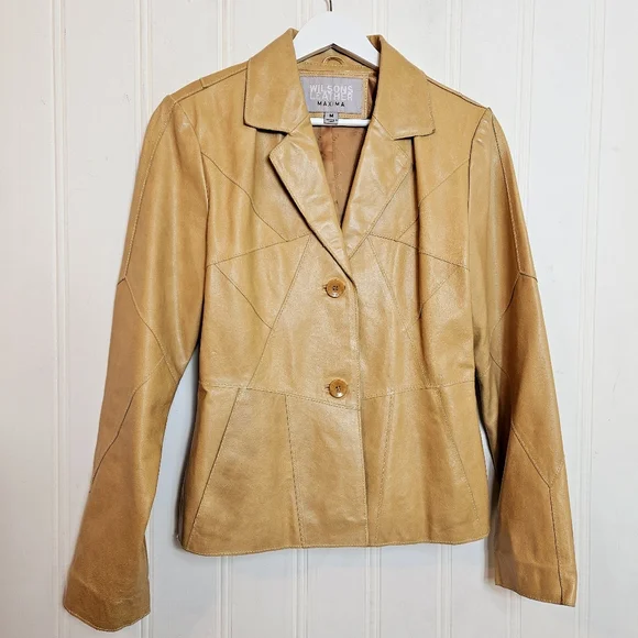 Wilsons Leather Maxima Vintage Y2K Camel Patchwork Blazer Style Leather Jacket Women's Size M Material: Genuine All measurements flat lay- (approx.) Shoulder Seam to Seam 16.25", Arm Pit to Pit 19", Sleeve from Pit 18.25", Waist 16.25", Hip 18",& Length from Shoulder to Hem 23.5"Gently Used Pre Owned Condition. Signs of Normal Wear may be Present. No Rips, Stains, or Holes Noticed. *GUC****creasing at wrist & smudged area - see all and last photos ***Open to Reasonable OffersPlease feel free to ask any questionsNeed additional measurements or Photos? - No Problem - Just ask*GV12824Y2K, Demure, English Countryside, VTG, Vintage, Retro, Weekend, Travel, Structured, Streamline, Classic, Slowfashion, Sustainability, Vacation, Light Academia, Boho-chic, Bohemian, Boho, Capsule Wardrobe, Solid Color, Neutral Color, Monochromatic Dressing, Tonal Dressing, Travel Ready, Western Honky Tonk, Boho Western, Urban Cowgirl
