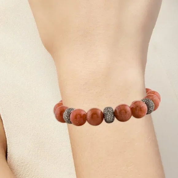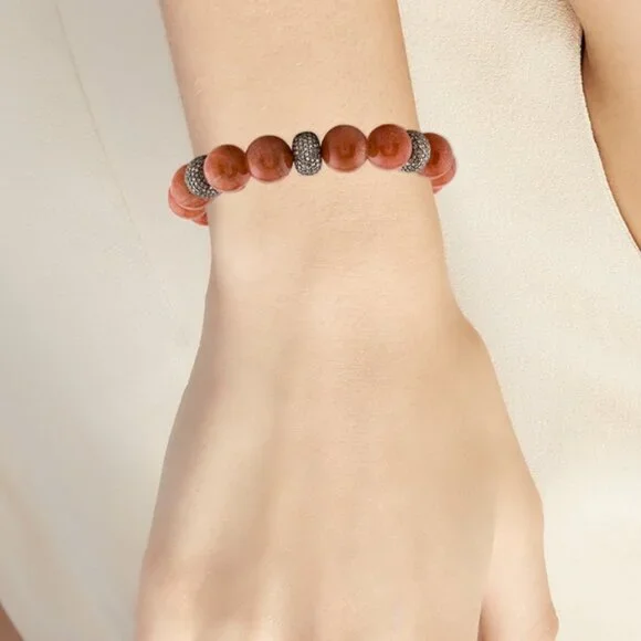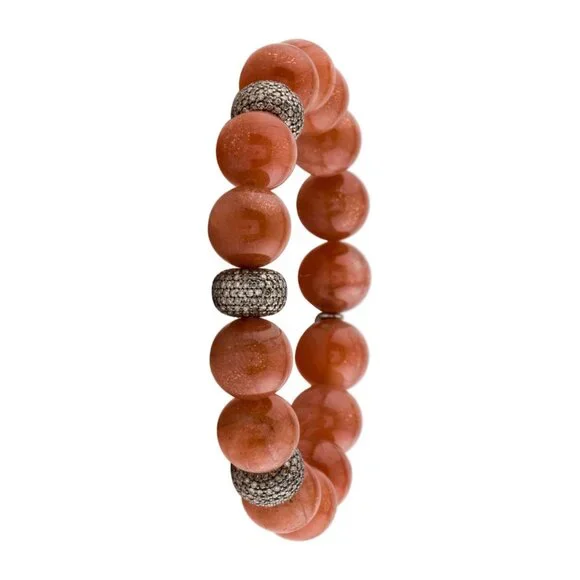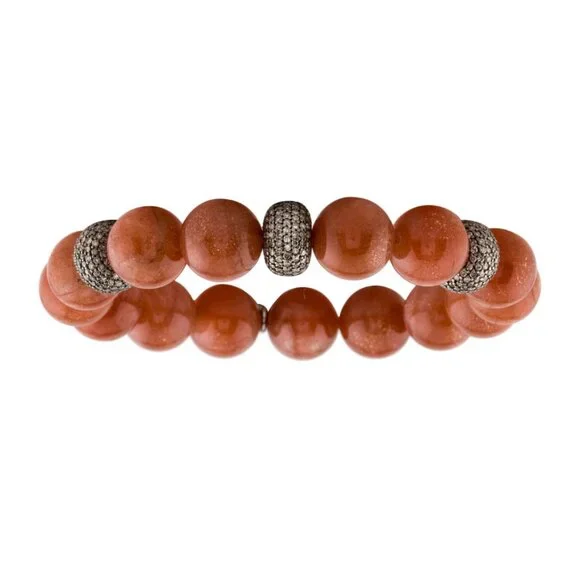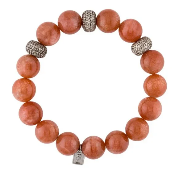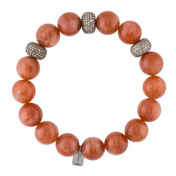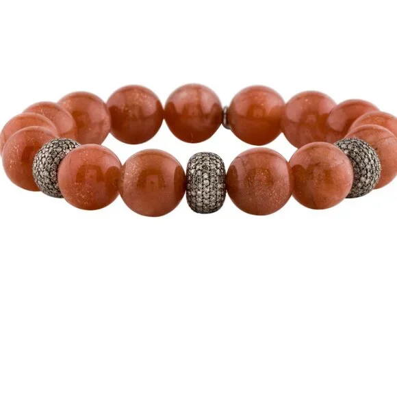 SHERYL LOWE SUNSTONE & DIAMOND 3.13CTW STERLING SILVER 925BEAD BRACELETSterling Silver Total Item Weight (g): 43.3This item has been appraised and inspected by a certified Gemologist. All diamond and gemstone grading is done under GIA standards as the mounting permits. All gemstone weights and measurements are approximate.Gemstone: DiamondCarat Weight: 3.13Stone Count: 570Stone Dimensions (mm): Stone Shape: Single Cut Color Grade: Near Colorless Clarity Grade: Included Stone Disclaimer: Stone carat weight is not provided due to limitations regarding cut/shape.Gemstone: SunstoneStone Count: 15Stone Dimensions (mm): Average Diameter 12.0-12.5 Stone Shape: BeadInside Circumference: 6.75"Maximum Inside Circumference: 6.75" Width: 0.5"Estimated Retail: $2,400.00 Condition: Excellent Designer: Sheryl Lowe