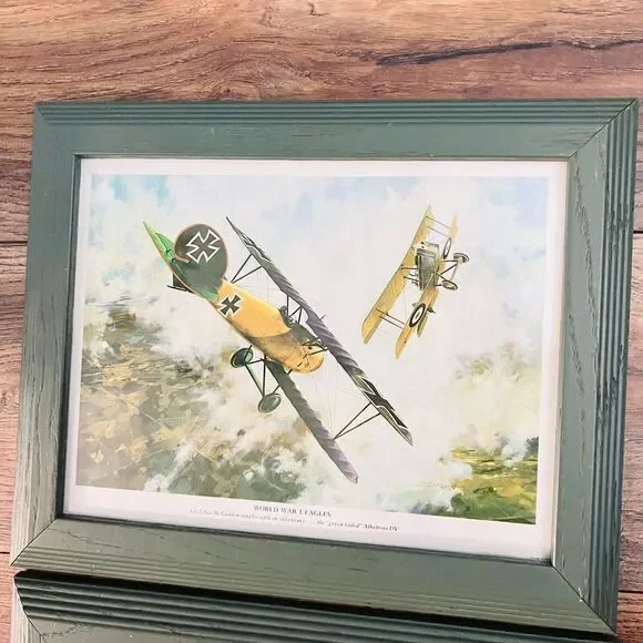 This is a rare find for any collector of militaria. Two original vintage WW1 Flying Eagles, signed by J.B. DENEEN and framed. The prints are beautifully matted, showcasing the striking illustrations of the iconic American Eagles. They would make a great addition to any collection or a wonderful gift for a history buff. Don't miss out on the opportunity to own a piece of history from the Great War era.Each measuring approximately 13.5“x10.5“ including Frame. Each has been previously loved and has some signs of age, adding character to its vintage appeal. Overall nice condition.