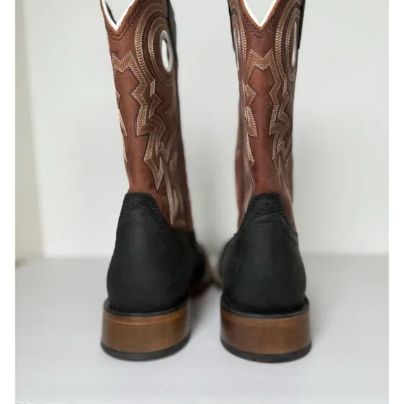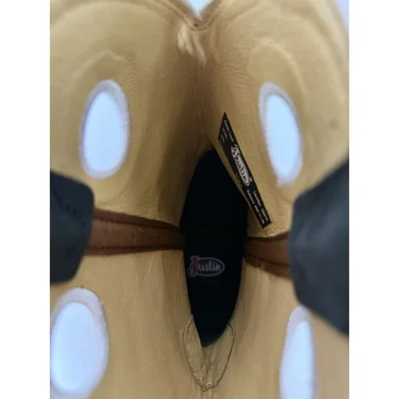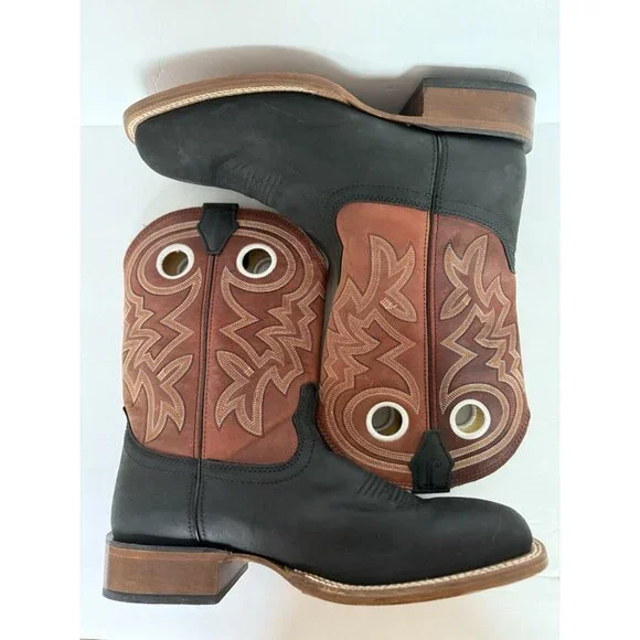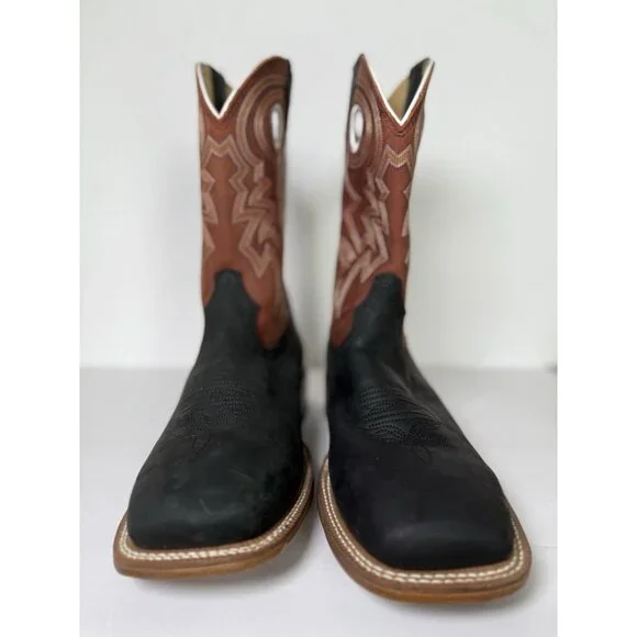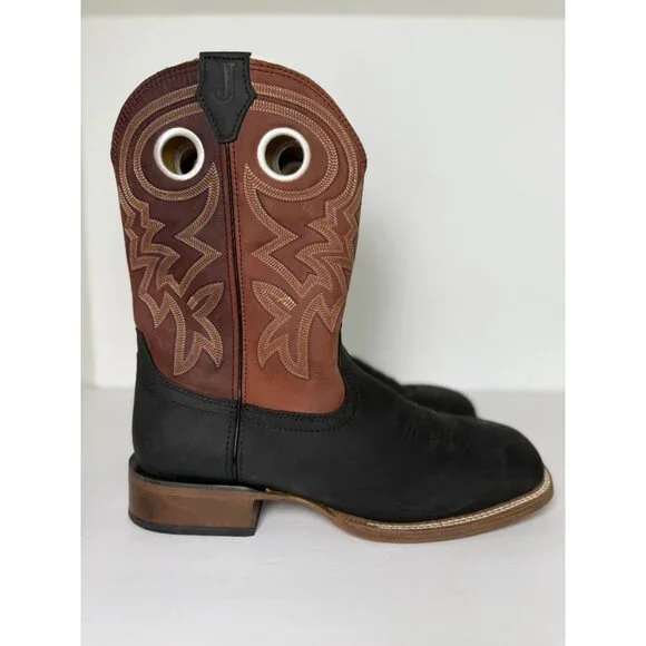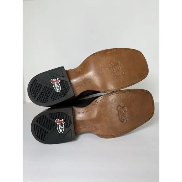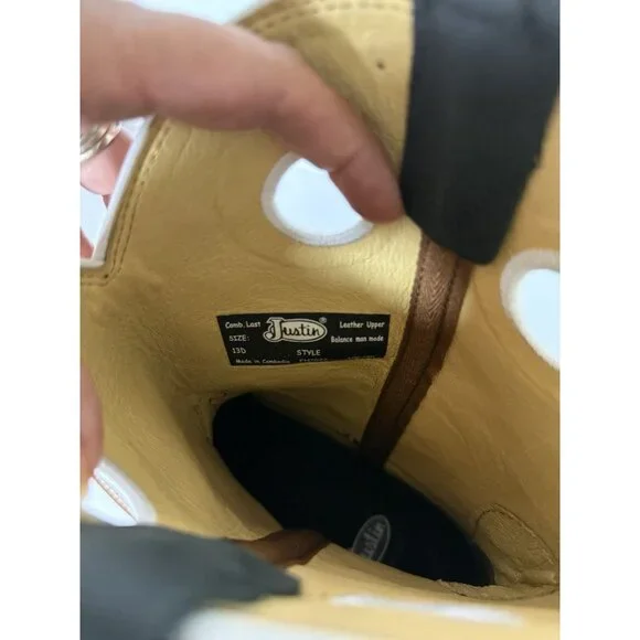 Justin 11" Big News from the newest Frontier line, blending supreme comfort with rugged charm. Meticulously crafted for resilience and precision, these boots stand as your ultimate partner through every journey. Enjoy unparalleled comfort with each stride, empowering you to conquer the frontier with flair and ease.Upper: Premium Full Grain LeatherLining: LeatherInsole: OrthoLite InsertToe Shape: Wide Square1 1/8" Walking BlockConstruction: 3/4 Welt with Double Row StitchShank: MetallicOutsole: LeatherStore Shelf Pull/returned boots therefore they are new without box, does have normal scuffs from not being in a box, pictures in listing. Size 13D