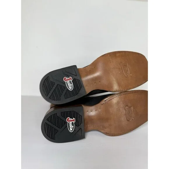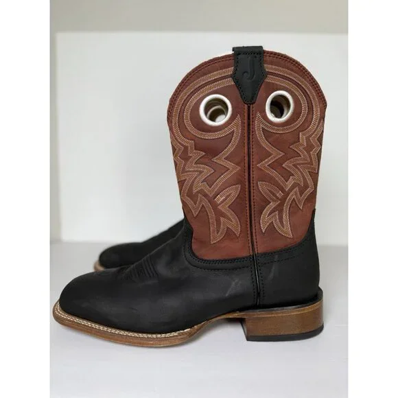 Justin Big News 11” Western Black Red Cowhide Boot Mens Size 13D FN7022 NEW
