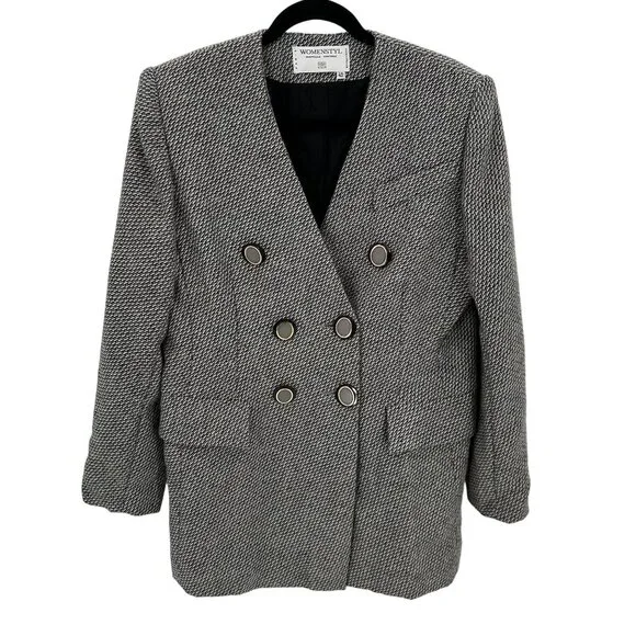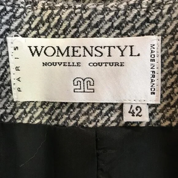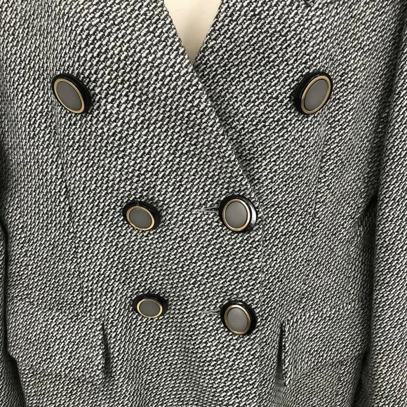 Condition: Brand new with tagsSize: 42Color: Silver/GrayFeatures: Double breasted, 3 front pockets, Sewn in shoulder pads, Fully lined, made in Paris France, retail $300Pattern: TweedMaterial: 75% Wool 25% AlpacaCare: Dry CleanApprox Measurements:Pit to pit: 20.5 "Length: 30"Shoulder: 16.5"Sleeve length: 23"Smoke free homeBundle and save on shipping!Closet 1.64Designer, Paris, Alpaca