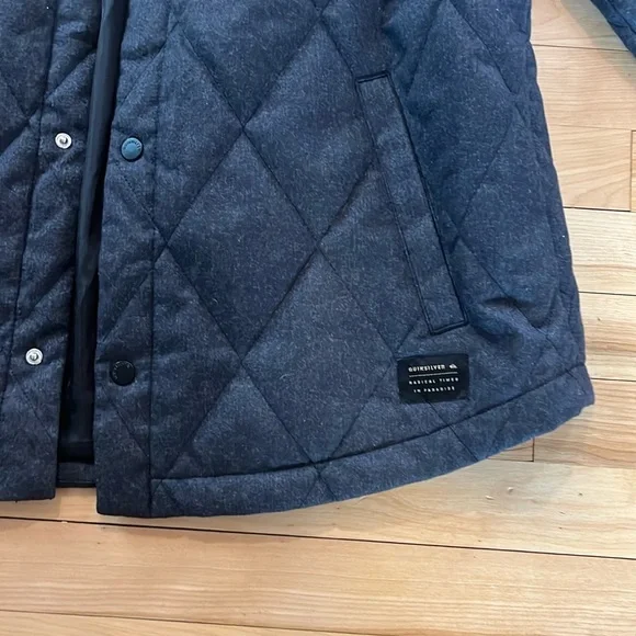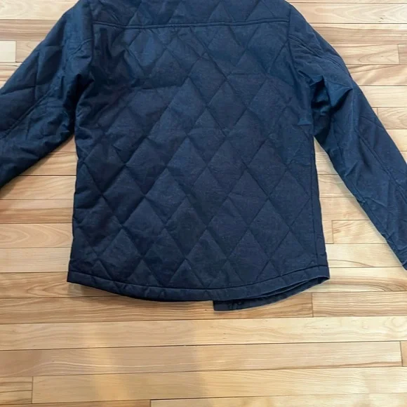 Experience the perfect blend of style and comfort with this Quiksilver black lightweight quilted shirt jacket. Featuring a diamond-shaped stitching pattern and a shirt-style corduroy collar, this hip-length jacket offers a sleek and fitted silhouette ideal for layering in cold weather.Very rare style no longer made.Excellent condition.Barely used.Very warm.