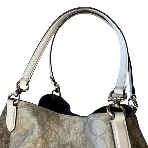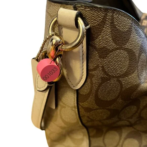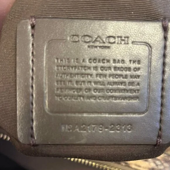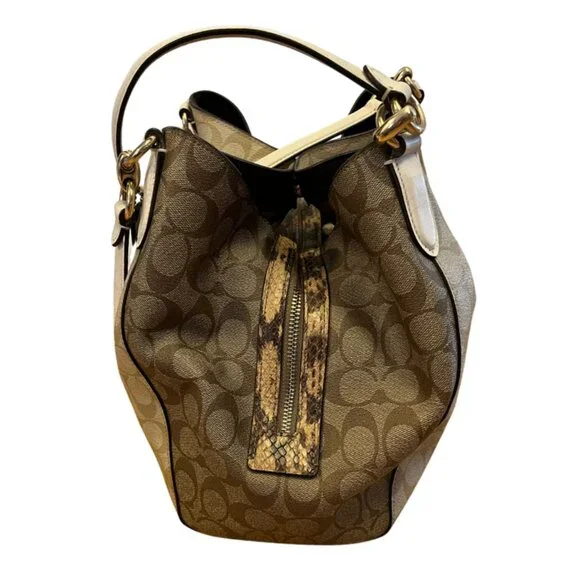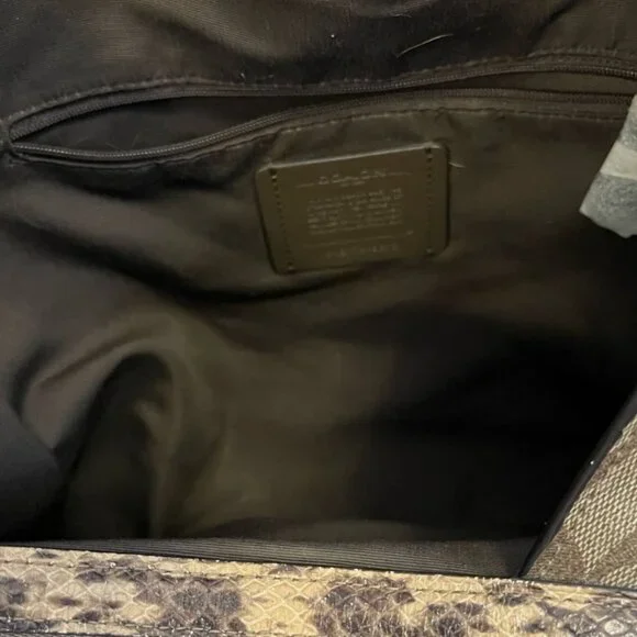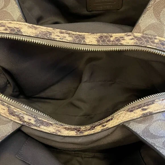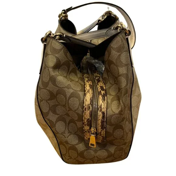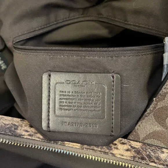 Exterior Material: Signature coated canvas smooth leather and snake-embossed leatherInterior Material: fabric liningClosure: snap and zipperApproximate MeasurementsWidth: 12.5"Height: 12"Depth: 3.75"Handle/Strap Drop: 9.5"Creed: A2179-2313Please Note: no noted callouts, NWOTAll imperfections/callouts will be documented in photos, if any are present.This item has been tagged with security label ID: 001033This item is non-returnable once the zip label has been removed.