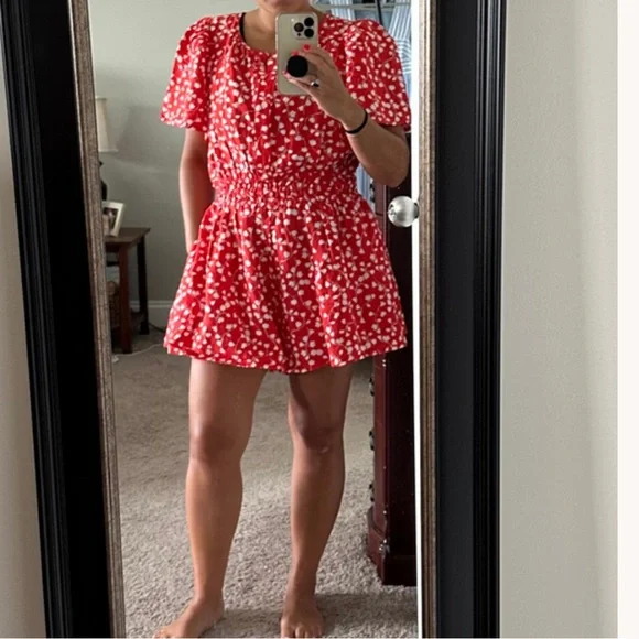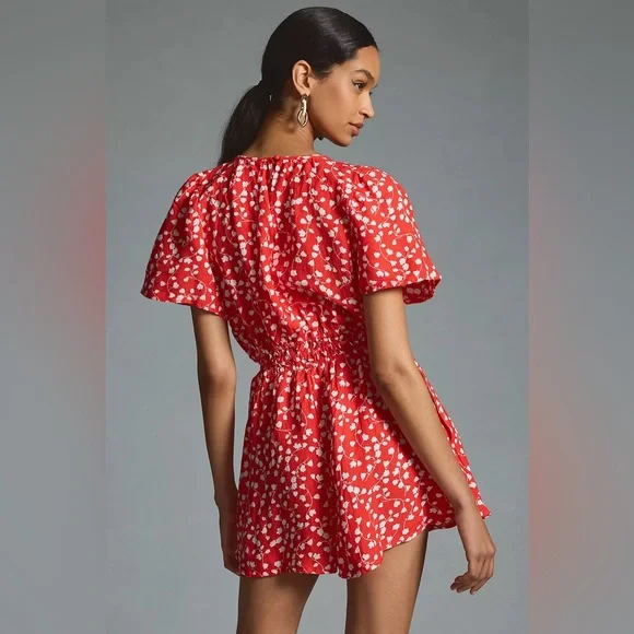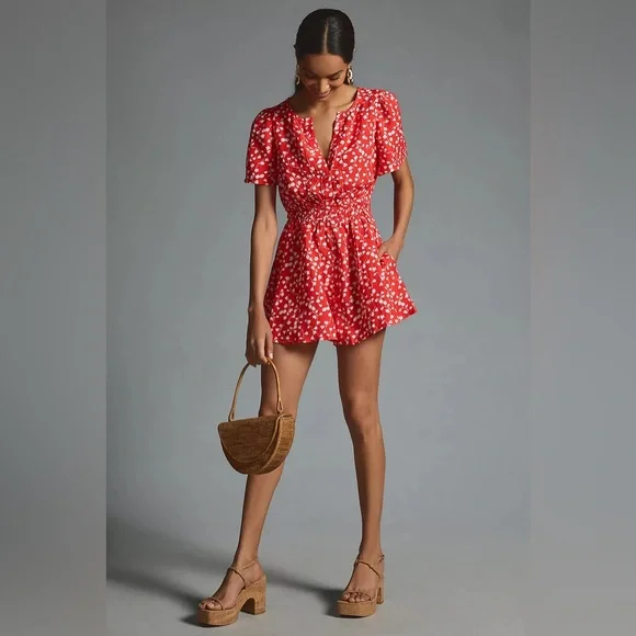 Anthropologie new Somerset romper: linen edition. This is red and brand new with tags. Size medium. Pet and smoke free home. From our Somerset Collection comes a ready-for-anything romper silhouette. Flowy and flattering, sensual and subtle, it's one SMOOTH operator.• Linen• Front slant pockets• Button back• Machine wash• ImportedDimensionsStandard:• 13.75" rise• 2.75" inseam• 19.75" leg opening