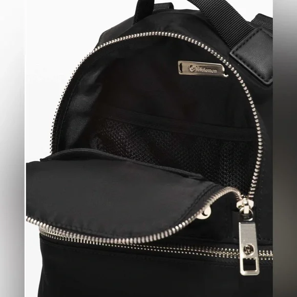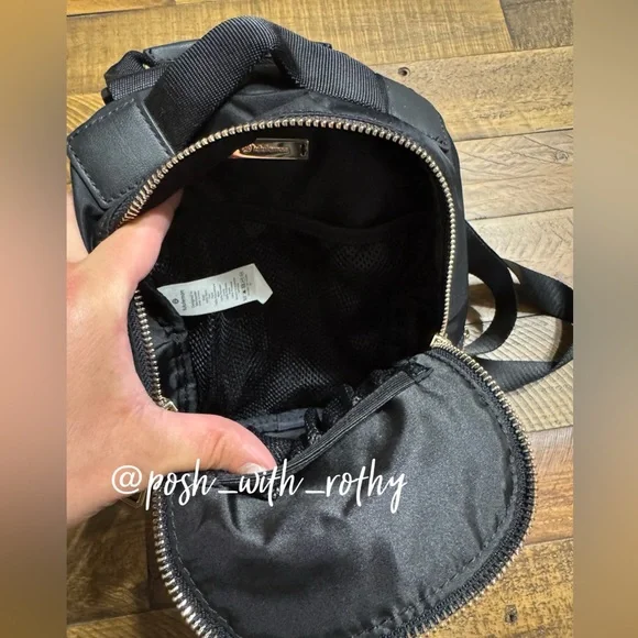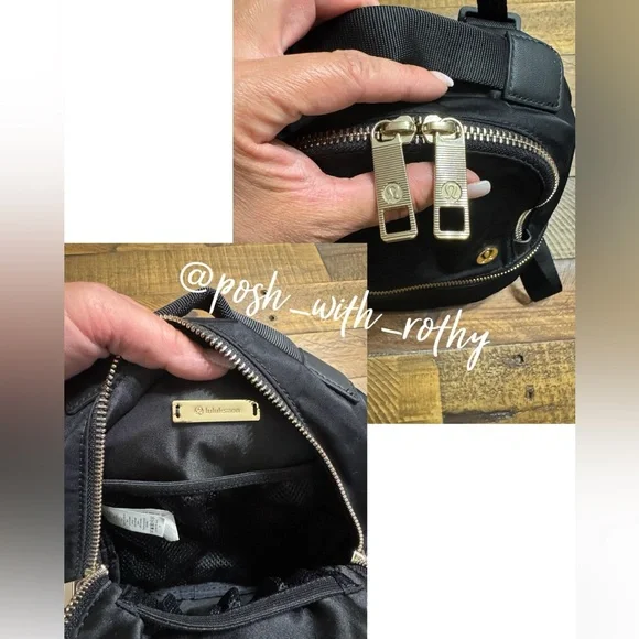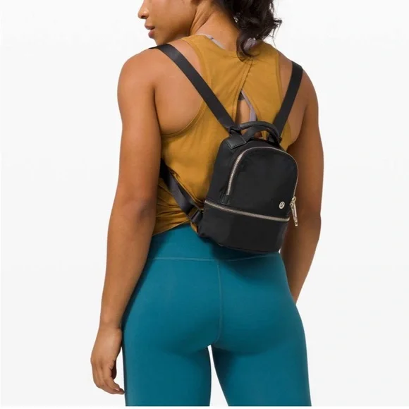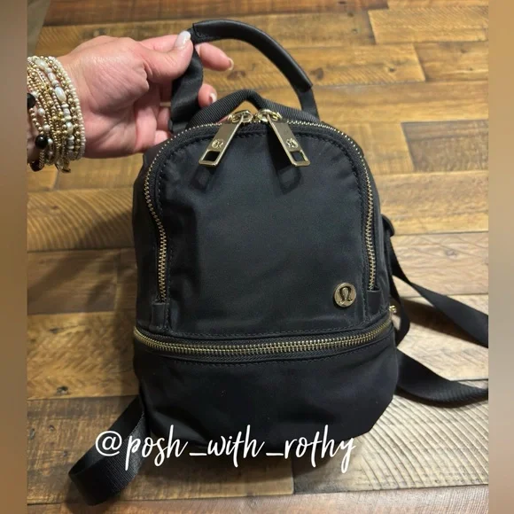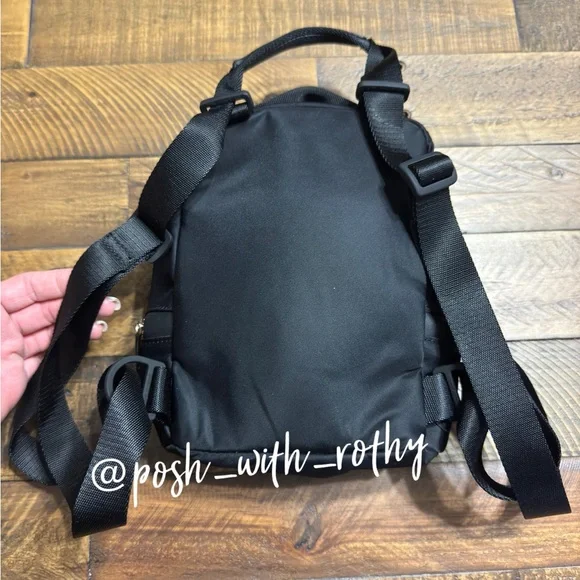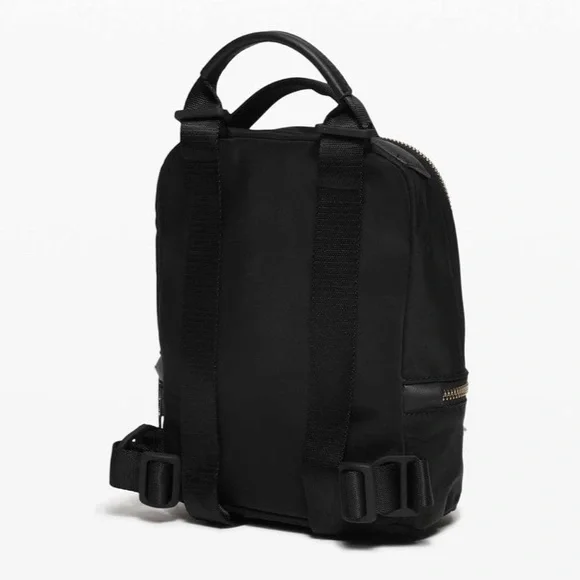 EGUC! This micro-sized City Adventurer backpack has adjustable shoulder straps and converts easily from backpack to cross-body bag. Fabric is water-repellent fabric. Easy-access pockets: Exterior pockets make it easy to stash your stuff. Essentials pocket : Store your must-haves in an interior pocket. Dimensions: 16cm x 8cm x 21cm (6.3" x 3.2" x 8.3") Volume: 3LColor: Black with gold hardware 🖤💛🖤💛