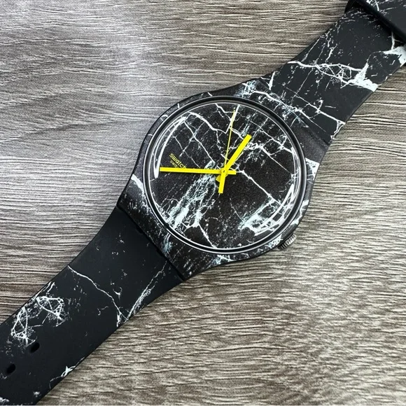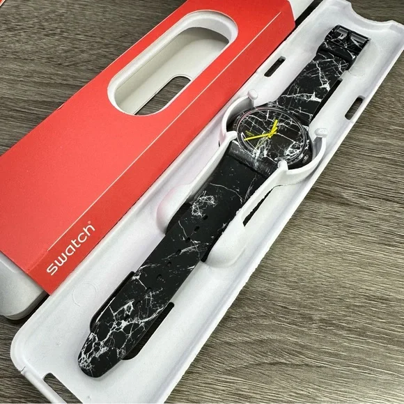 Swatch is a brand of affordable and fashionable wristwatches that gained popularity in the 1980s. These watches are known for their vibrant colors, innovative designs, and playful aesthetics. Swatch watches often incorporate plastic cases and bands and are recognized for their Swiss quality and unique approach to timekeeping✅Purchase at the swatch store in Manhattan, New York✅Perfect gift for watch lovers or collectors!✅MOVEMENT TECHNOLOGY Quartz✅CASE DIAMETER 41mm✅CASE MATERIAL Black Plastic✅DIAL Black / White✅BAND TYPE Silicone✅BAND COLOR Black / White✅BAND Width 19mm✅CRYSTAL Scratch Resistant Acrylic Crystal✅CLASP Buckle✅WATER RESISTANCE 30m / 3Bar / 100ft✅If you have any questions leave me a message below!