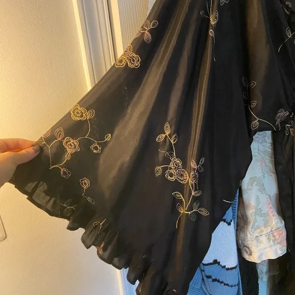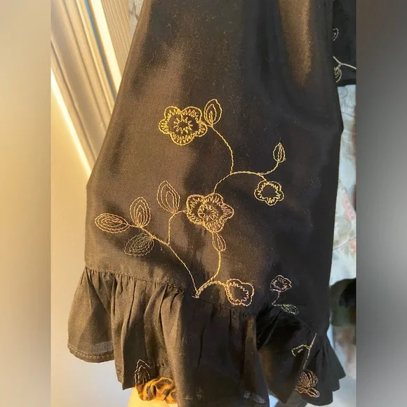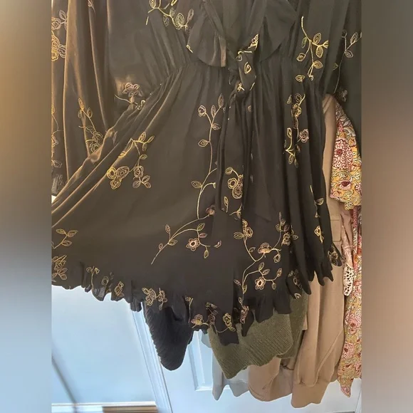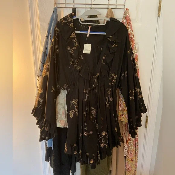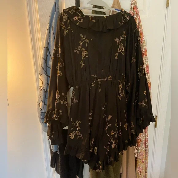 Free people black and gold embellished embroidered romper. Flared sleeves / bell sleeves, ruffle detailing on the necklace - so gorgeous! All flowy witchy beautiful. Size medium Brand new. Price firm BUT if you bundle something else from my closet you get 20% off! summer Spring Boho picnic hippie 60’s 70’ festival soft-girlcrochet maximalist core beachy resort wedding guest bridesmaid date night sexy modest contemporary layer classic trendy layered office preppy cruise bohemian vintage flirty thanksgiving chicbeach tropical vacation Coachella dress skirt floral midi western classy winter fall engagement bachelorette travel aesthetic vibe retro casual prom work formal gown ball pastel goth prairie instabaddiecore cottagecore Western Festival Zara Vacation Date Night Trending Comfortable Cute Casual Cottagecore Minimalist Floral Hippie Sun Star Moon Gift Heart Designer Shiny Soft Silk Velour Huntress Of Man Velvet Fringe Leather Suede Witchy Victorian Antique Vintage Gypsy Boho Style Notes: Cottagecore, vintage vibe, 70s, anthropologie, prairie, apron, winery, floral maxi, derby, garden party, revolve, floral printed, walkincloset, beach vacation, wedding guest, rehearsal dinner, preppy, floral pattern, sun dress, warm weather dress, photoshoot,special occasion, white floral, graduation, sun dress, day dress, flower, coastal cowgirl, coastal grandma, boho, midi dress, summer, cottage, pastel, ruffle, concert, bohemian, breezy,romantic, casual, long dress, ethereal,