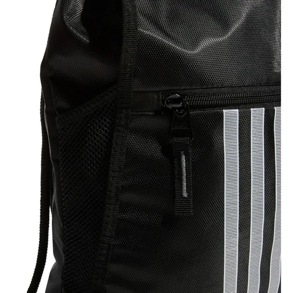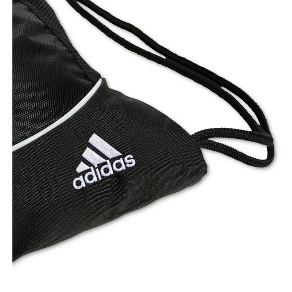 Carry just what you need with this adidas sackpack, the perfect size for a change of clothes, wallet, keys and other essentials.• Approx. exterior dimensions: 14" x 18"• Exterior: zip pocket, logo at front; mesh bottle pockets at sides• Handles: drawstrings convert to shoulder straps• Polyester• Spot clean only