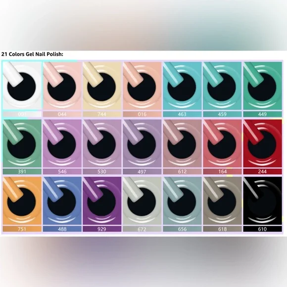 🆕 Gel Nail Polish Decoration Manicure Tool Starter Kit* Brand Unopened New Item⭐️* WHAT'S INCLUDED 👇🏻👇🏻👇🏻* UV LED Lamp 120W* 21 Colors Gel Nail Colors * Base Coat* Top Coat* Matt Top Coat* Nail Glitter* Nail Tape* Bristle Brush* Nail Brush Duster* Nail Separator* Cuticle Oil Pen* Cuticle Pen* Gel Brush* Nail File* Nail Buffer* Cuticle Pusher