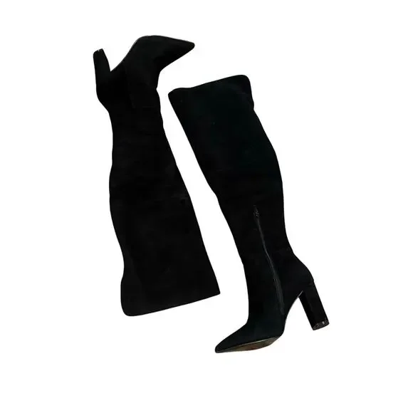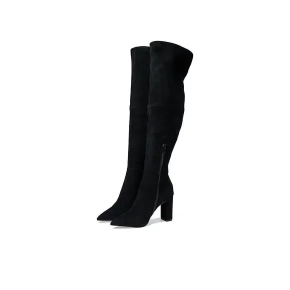 Steve Madden Blyss Women's Boots Pointed Toe Black Suede Size 7.5 NWBLet onlookers praise your contemporary take on fashion as you step out wearing Steve Madden Blyss Boots. With a pointed toe silhouette, this over-the-knee footwear features zippered side closure and high-block heels. Suede upper. Synthetic lining and insole. Synthetic rubber outsole. Imported.Bottoms, Heels, Styling, Embossed, Suede, Stripe, Classic, Shafts, Leather, Sleek, Heel, Pleated, Mixed, Trendy, Preppy, Complementing, Sexy, Feminine, Chic, Day, Night, Comfort