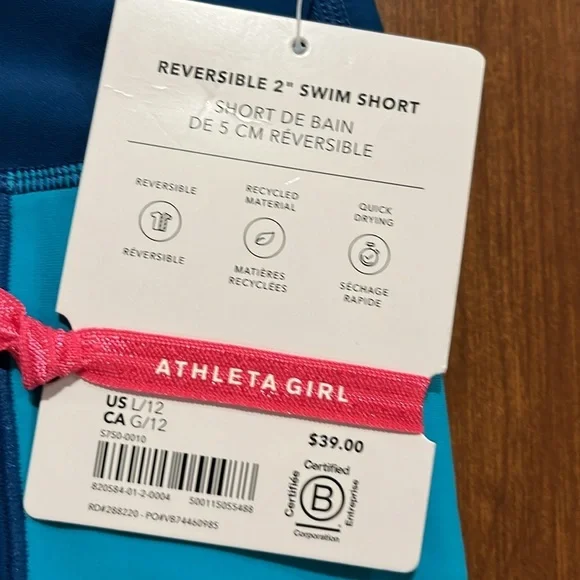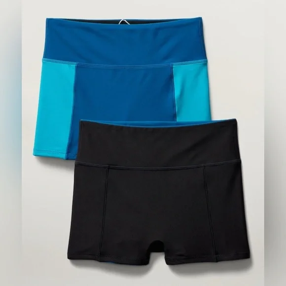 Quality two pice set that matches up in color. Rashguard has some black contrast with the blue. Shorts can be either black or a lapis blue side to them.Please see last two pictures for added details. They dry quickly so when you leave the pool you can go to a store in them. New in excellent condition!