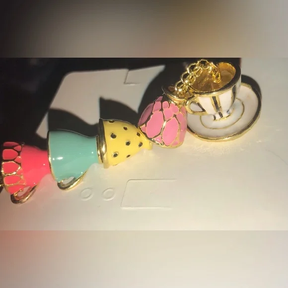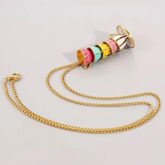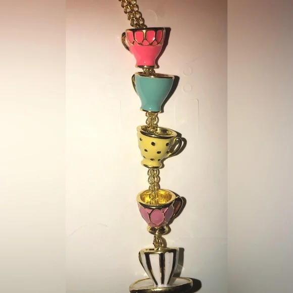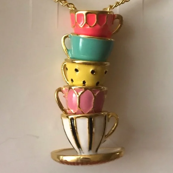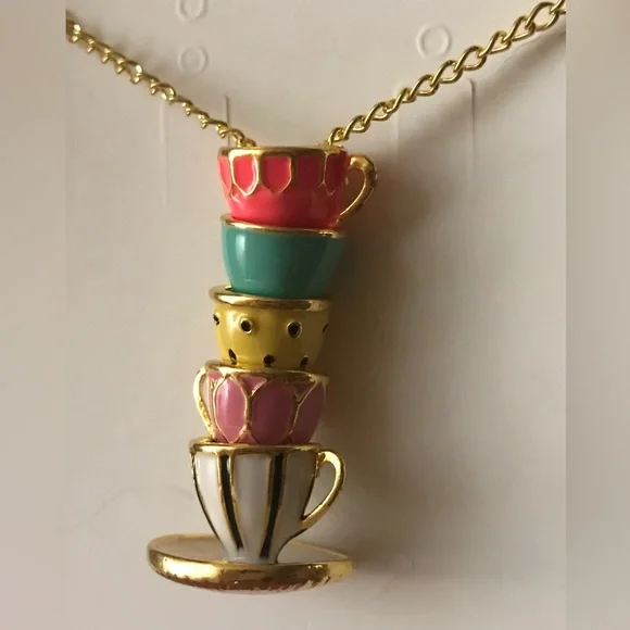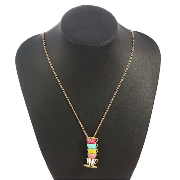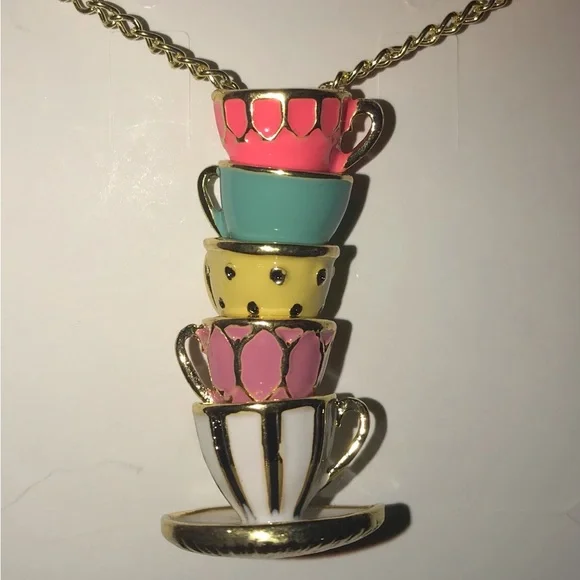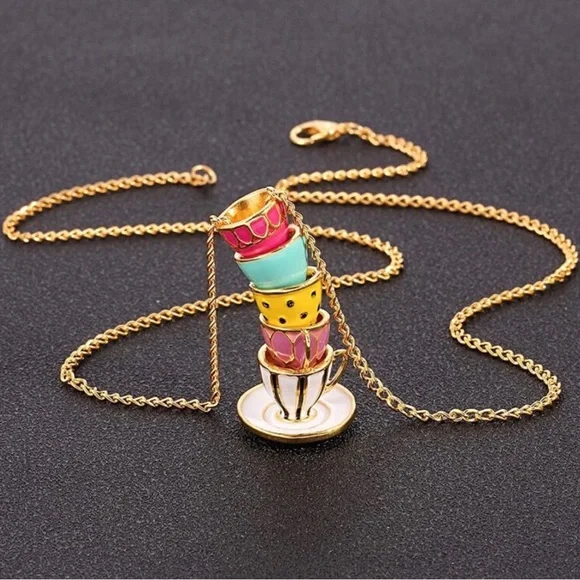 “Mad Hatter Tea Party” Alice in Wonderland Disney Stacked Rainbow Teacups Cup Mug Plate Platter English High Tea Fantasy Kooky Eccentric Quirky Whimsical Fantasy Gold Necklace. Fabulous Alice in Wonderland inspired necklace with vertically stacked/movable rainbow colored teacups. On a cable chain. Great for kids, teens, or adults! New.Measurements:Pendant length: 1.8”Pendant width: 0.8”Chain length: 22”IF YOU WANT IT, DON’T LET IT GET AWAY — SEND ME AN OFFER!🙂 I LOVE TO DO BUNDLE ORDER DISCOUNTS!