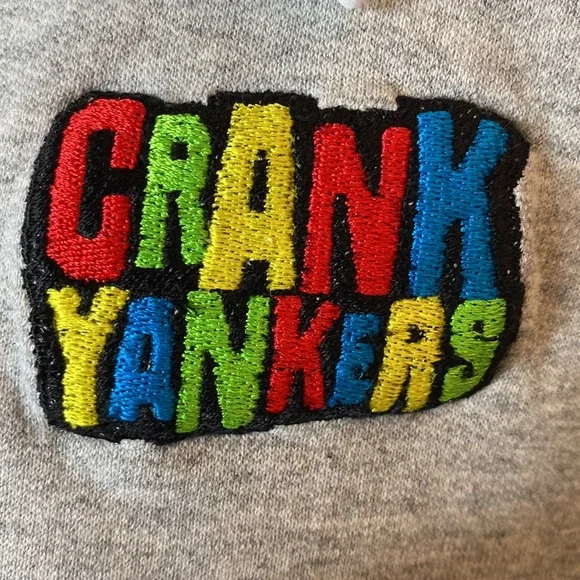 Hanes Adult Small "Crank Yankers" Sweatshirt JacketHoodedGrayThis is a jacket given to CAST/CREW members only.Would have listed it for $150but because of the stains I am listing it for $99 See if your magic can get the spots out… the spots/possible stain in the photo is covered by the hood on the backdidn’t even notice it till taking photos These are previously owned and laundered. Overall great condition. Comes from smoke free home. Please see all photos for approximate measurements and any flaws, tears, rips, stains, imperfections …. They will be pointed out in the photo if any are found. Please don’t hesitate to ask any questions prior to purchasing.