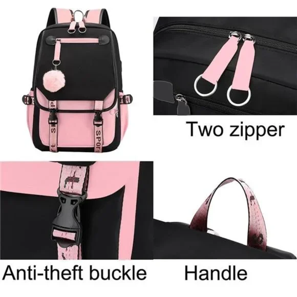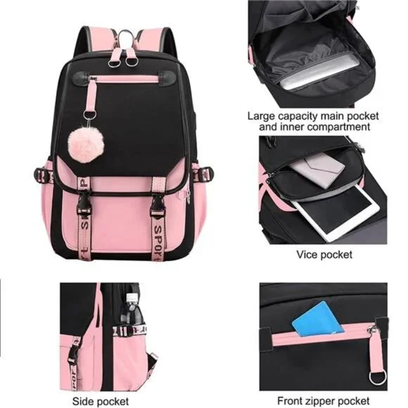 About this itemProduct detailsSchool Backpack Girls Bookbag, Heavy Duty Kids Backpack 21L Children Schoolbag Bookbag with USB Charge Port[Premium Durable Nylon Fabric] Crafted with premium lightweight tear resistant high density nylon fabric and quilted polyester linear, waterproof, doesn't color-fading, odorless, durable, environmentally friendly, and healthy. The backpack comes in a high-quality design assuring you a great experience when traveling to school.[Built with USB Charging Port] This backpack is built with a charging USB interface , making it more convenient to charge your phone while walking,and you can put your device in your backpack, and then listen to music through the external Headphone Interface on your backpack.[Larger Storage Capacity] 21L Capacity-Dimension: 16.53" x 11.02" x 7.48"(42 x 28 x 19cm): -One Large Main Compartment: Suitable for books, pen case, camera, thin clothes, cosmetic bag, headset, iPad and other electronics items, etc. -A eparate pouch is perfect for mobile phones and a power bank. -Separate Laptop Compartment: Fit for LESS THAN 15.6 Inch Laptops and Macbook. -Three Zipper Front Pockets: Ideal for phones, pens, keys, wallets, cards and other small items. -Anti-theft Pockets On The Back: Put your important things like your phone, and credit cards in this hidden place.[Perfect Gift For Your Loved Ones] A must-have gift for your kids over three years old, like school graduation and