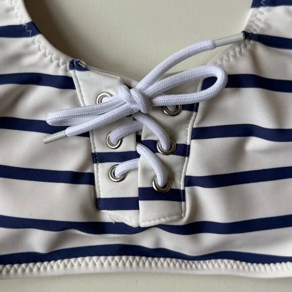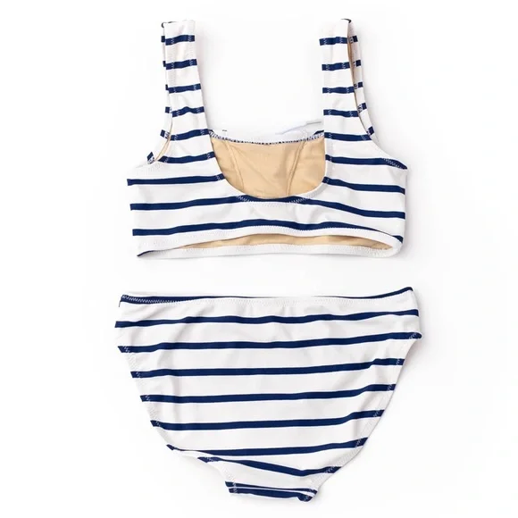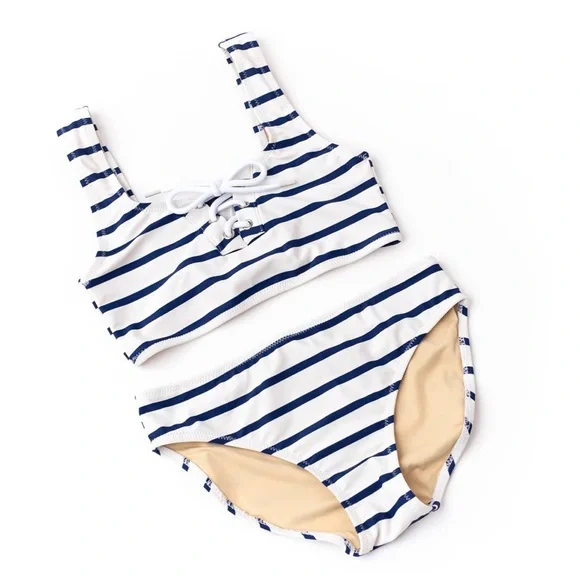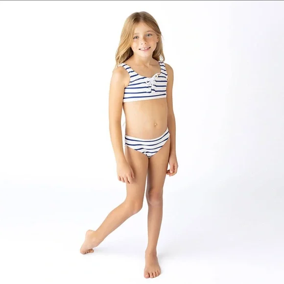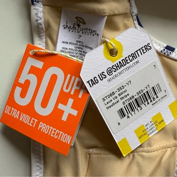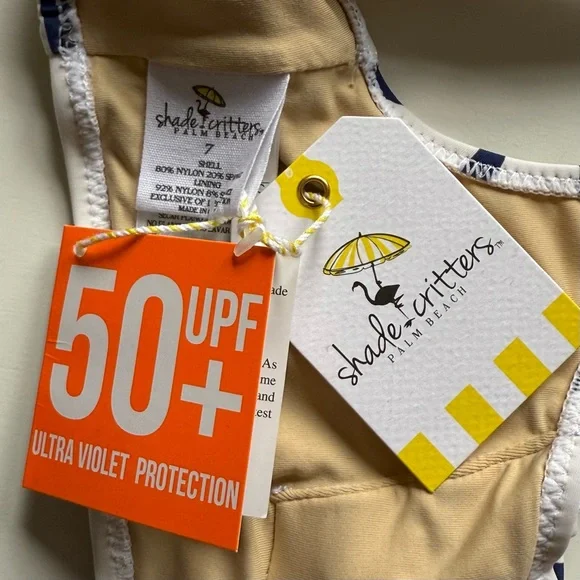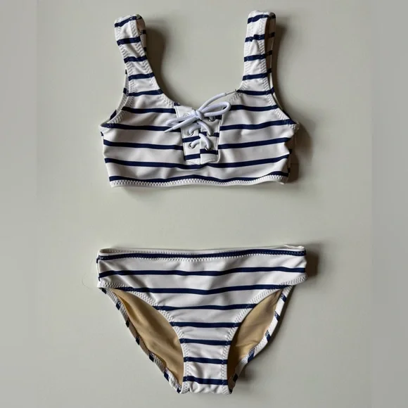 Shade Critters Girls Nautical Stripe Lace Up Bikini - Size 7Calling all beach mamas! Have you been searching for an adventure-ready swimsuit for your little lady? Look no further! Our Nautical Stripe Girls Lace Up Bikini is perfect for making a fashion statement at the beach. With its fresh, nautical-inspired stripes and daring wrap-around design, this bikini is sure to make any girl stand out in style. Crafted with lightweight yet durable material, this piece is perfect for lounging in the waves all day long.• Lace Up Detailing• Fully Lined for Comfort• Flat Zig Zag Stitching• Full Cut Coverage• Designed in the USA• Imported• UPF50+ Sun Protective FabricsComposition: Shell - 80% Nylon, 20% SpandexLining - 92% Nylon, 8% SpandexSize: 7Brand new with tags & liner. First 6 photos are for reference only.