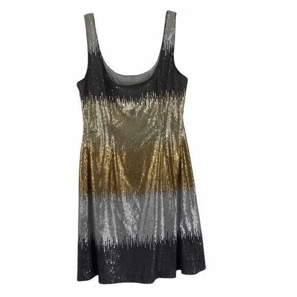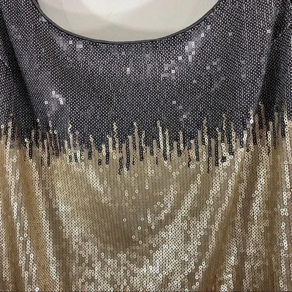 Maggy London Mini Sleeveless Gold/Silver/Blk Sparkle Renaissance Sequins‎ Sz S