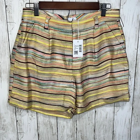 Ecru Sorrento Cuffed Striped Shorts Size 6High Rise Yellow Beige OrangeBrand new with tags!Waist measures approximately 15” laying flat across Fabric Content: 54% Cotton / 44% Acrylic / 2% Polyester / 1% Polymide Lining: 100% CottonColor: Palm Springs MultiMake an offer or see my closet for similar listings!✨