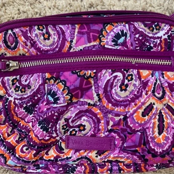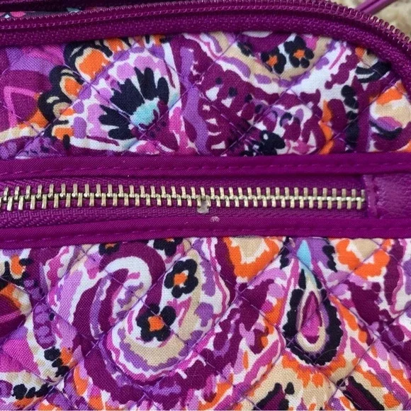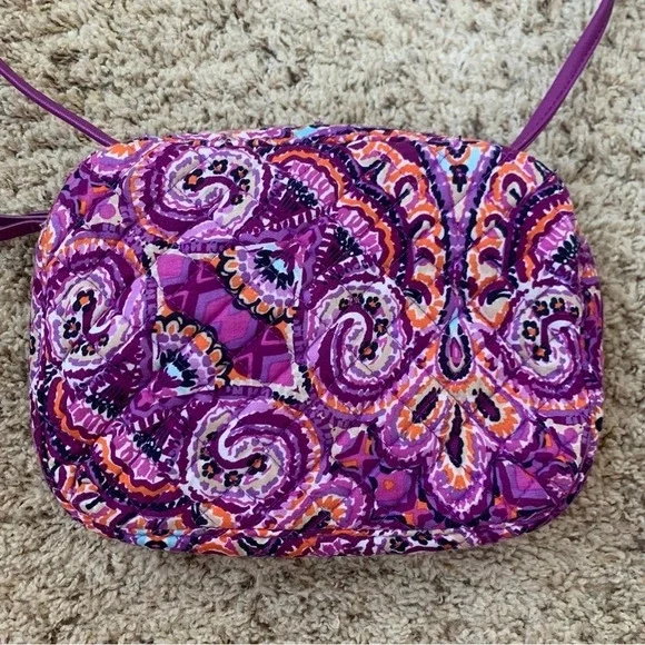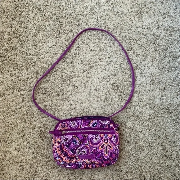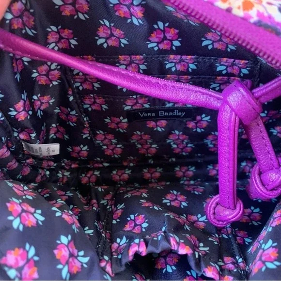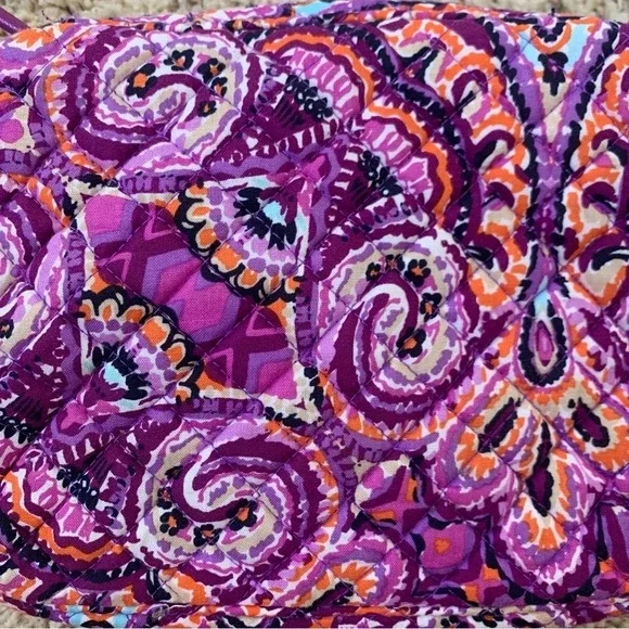 The Vera Bradley Iconic Little Crossbody bag is the fashionable travel solution for storing your everyday items! This compact crossbody bag features a front zipped pocket and has the components of a wallet built right into it, with 3 card slots! The credit card slip pockets are enhanced with Radio Frequency Identification (RFID) protection to help keep your personal information safe without sacrificing style!Dream Tapestry printMinimal wear- see photos, one small area of discoloration near front zipperApprox measurements flat- 9 inches across 7 inches high